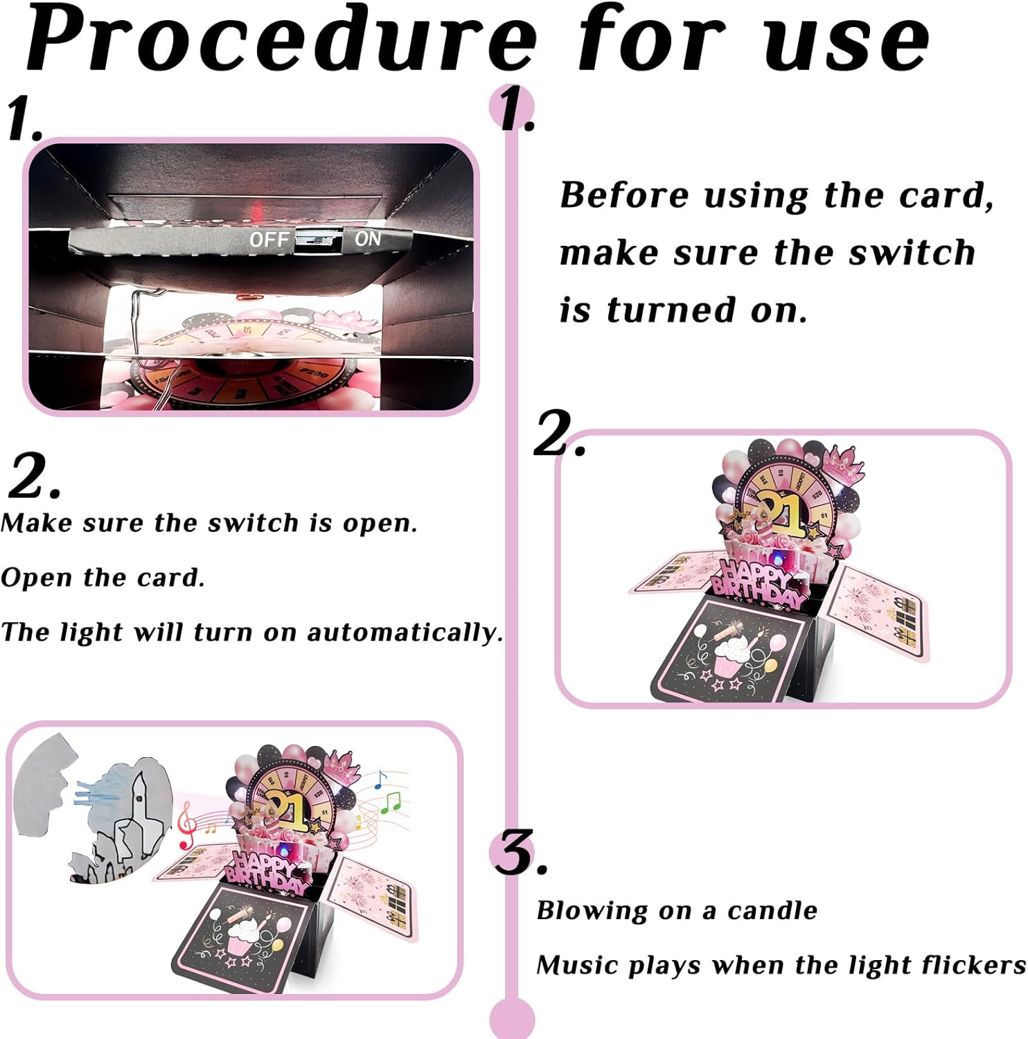Blowable Candle Music Birthday Card: The card plays a happy birthday melody and is equipped with Blow out the LED candle that illuminate the cake and its surroundings