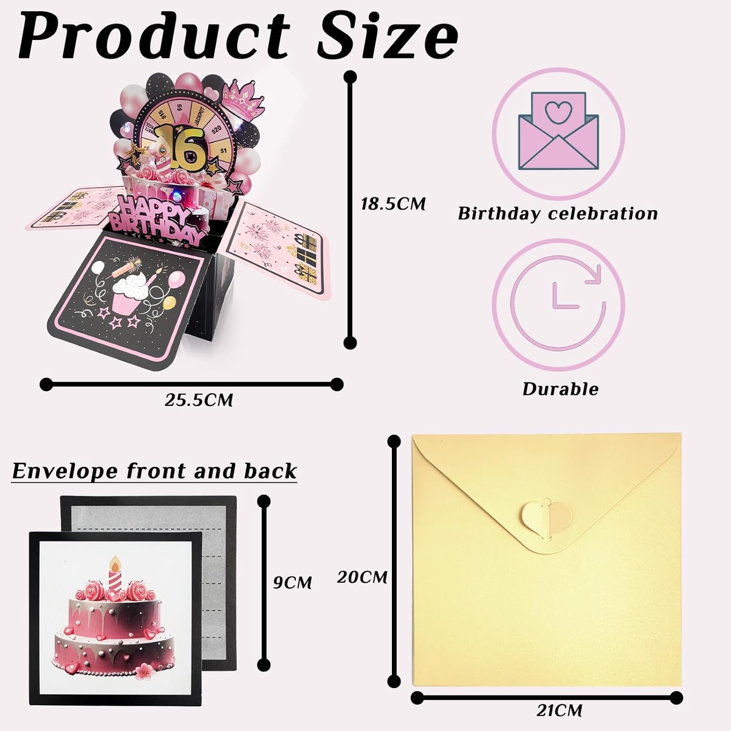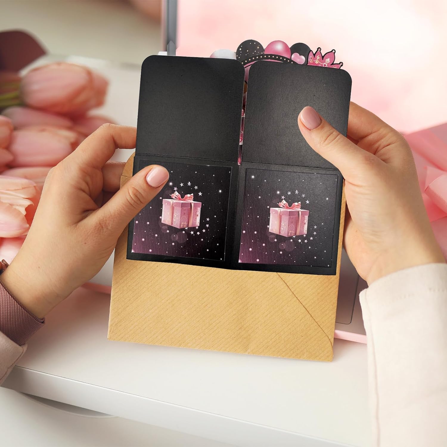 3D Pop-Up Surprise:Unveil instant magic with this elegant birthday card! As the box opens, a dynamic 3D sculpture of champagne flutes, sparkling fireworks, and floating balloons bursts to life, accented by shimmering gold candles. Precision laser-cutting ensures smooth pop-up action, perfect for milestone ages like 13th,14th,15th,16th, 18th,21st, 30th, 40th, 50th, 60th, 70th, 80th, 90th birthdays, or a timeless “Happy Birthday” celebration