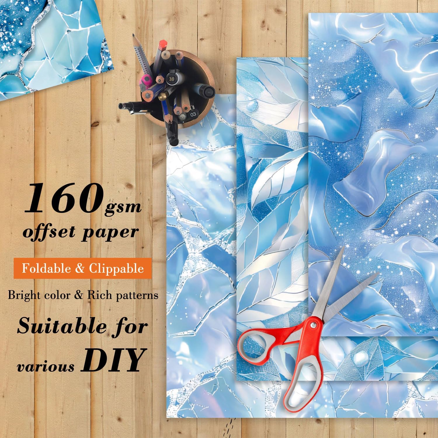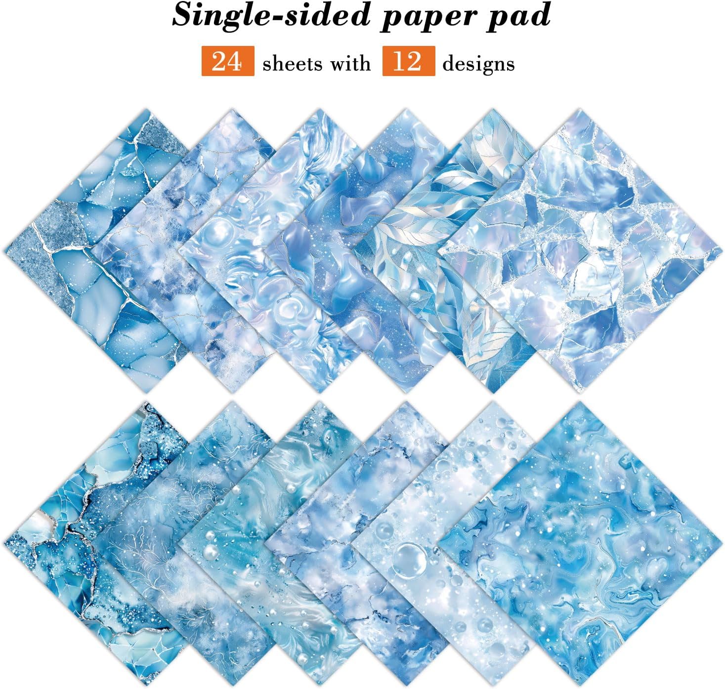 VALUE SET – The blue theme water ripple leaves scrapbook paper pad collection includes 12 different patterns, 2 sheets for each pattern. The size is 6in x 6in(15.24cm x 15.24cm). The unique aesthetics design of colorful patterns is suitable for making cards and DIY projects, meeting your different artistic and decorative needs.