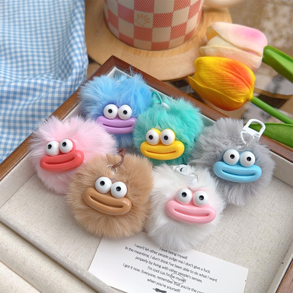 Cartoon Sausage Mouth Furry Balls Keychains for Women Men, Pendant Plush Balls Bag Charm Backpack Ornament Accessory