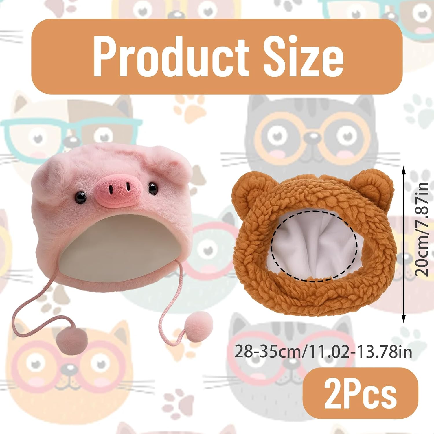 Adorable Cat Hat Set: Includes 2 cute cat hats with bear and rabbit designs, perfect for pet owners looking to add charm to their furry friends; The soft fabric ensures comfort while keeping pets stylish during winter or special occasions