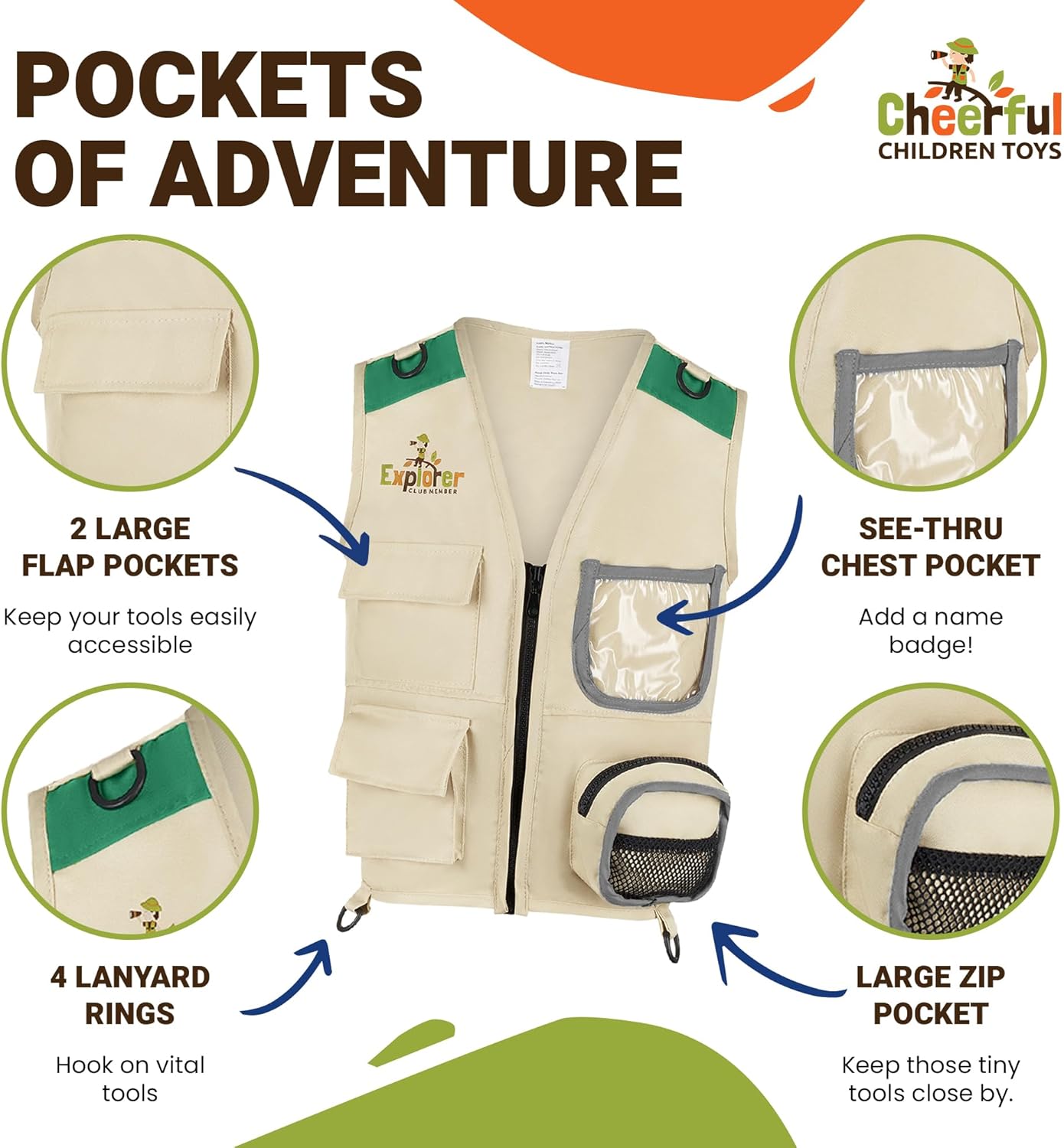 ✅ 21-PIECE EXPLORER KIT – Comes with a high-quality explorer vest with a matching safari hat, plus durable, adventure-ready accessories such as binoculars, magnifying glass, whistle with a compass, bug catcher, bug container, butterfly net, tweezers, toy bugs, and a convenient drawstring bag. A complete set for wild book day costumes for boys and girls.