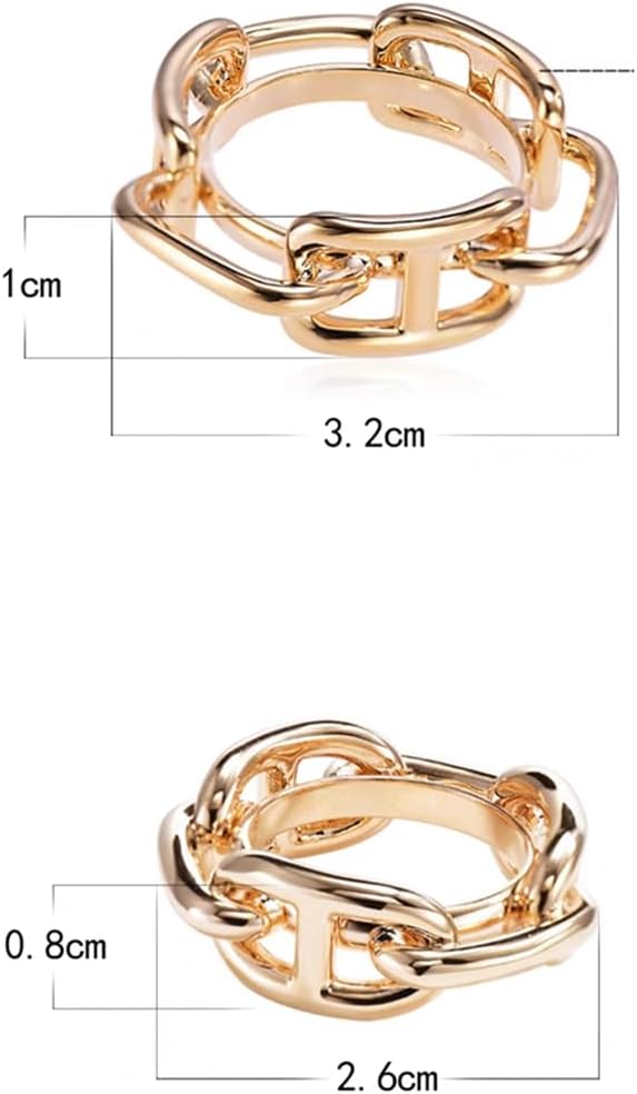 Chunky Chain Silk Scarf Ring Clip for Women Gold Plated Minimalist Wide Band Statement Buckle Holder Clasp Holder Scarfs T-Shirt Shawl Scarves Clasp Dress Clothing Accessories Jewelry