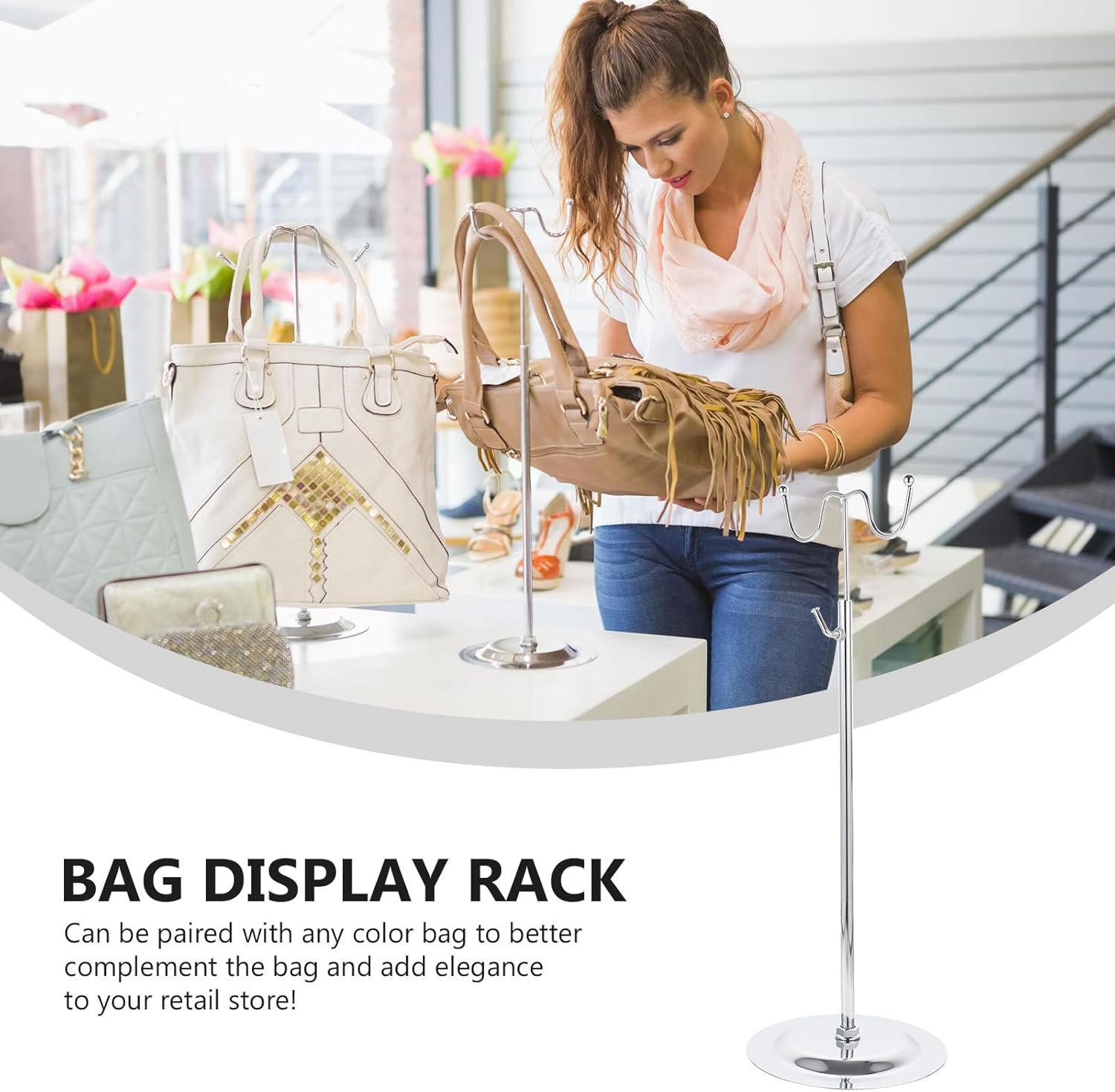 – Can be paired with any color bag to better complement the bag and add elegance to your retail store!