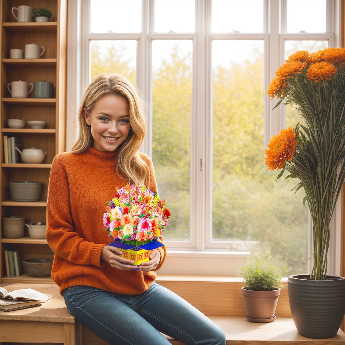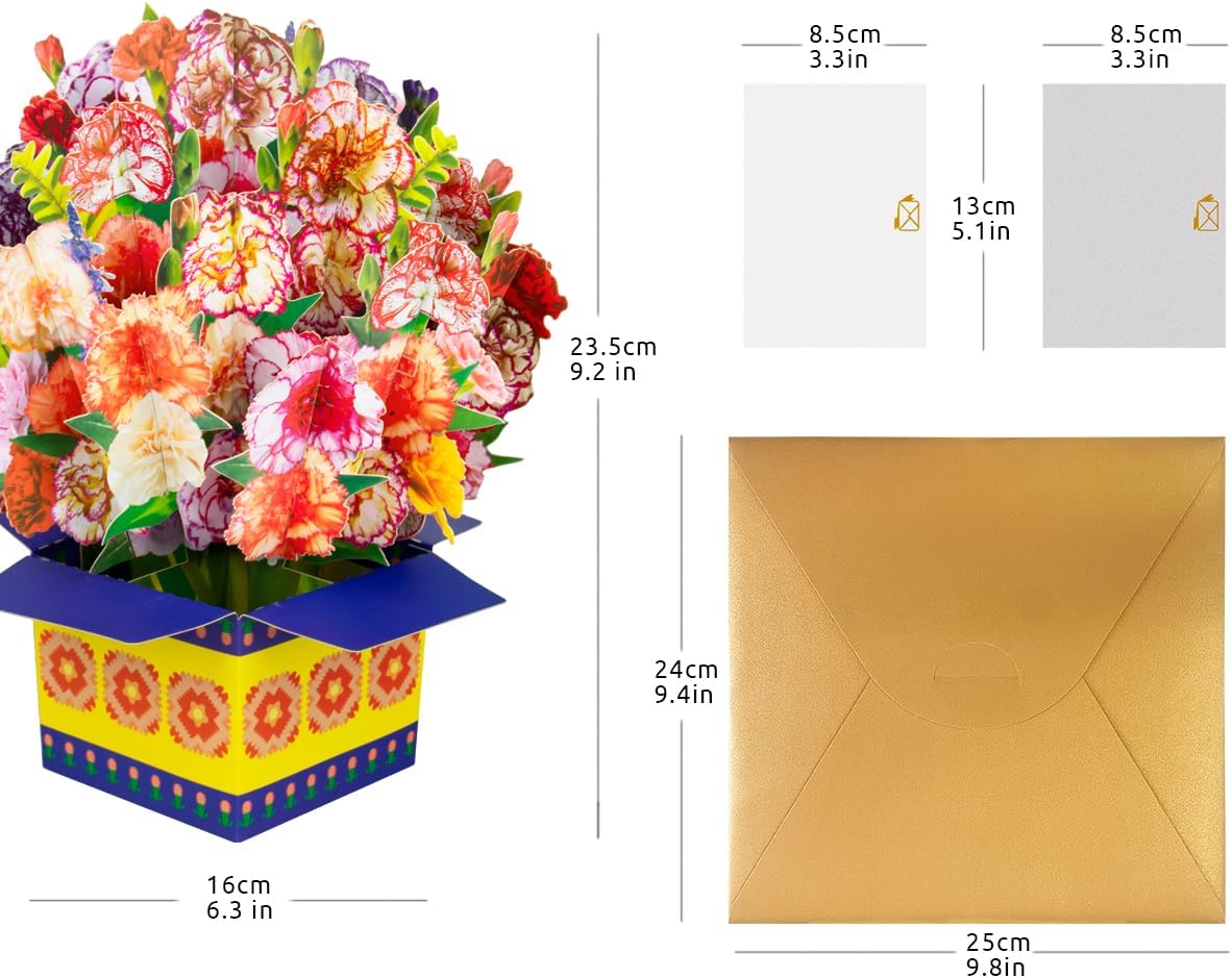 【High-Quality Pop Up Card】Dimensions: 8.5 x 9 inches. The paper flower bouquet card is made and printed on high quality paper. It comes with a blank card for writing your message and an envelope that can be sent to your loved ones and friends as a birthday card, thinking of you card, thank you card, get well card, friendship card or encouragement card.