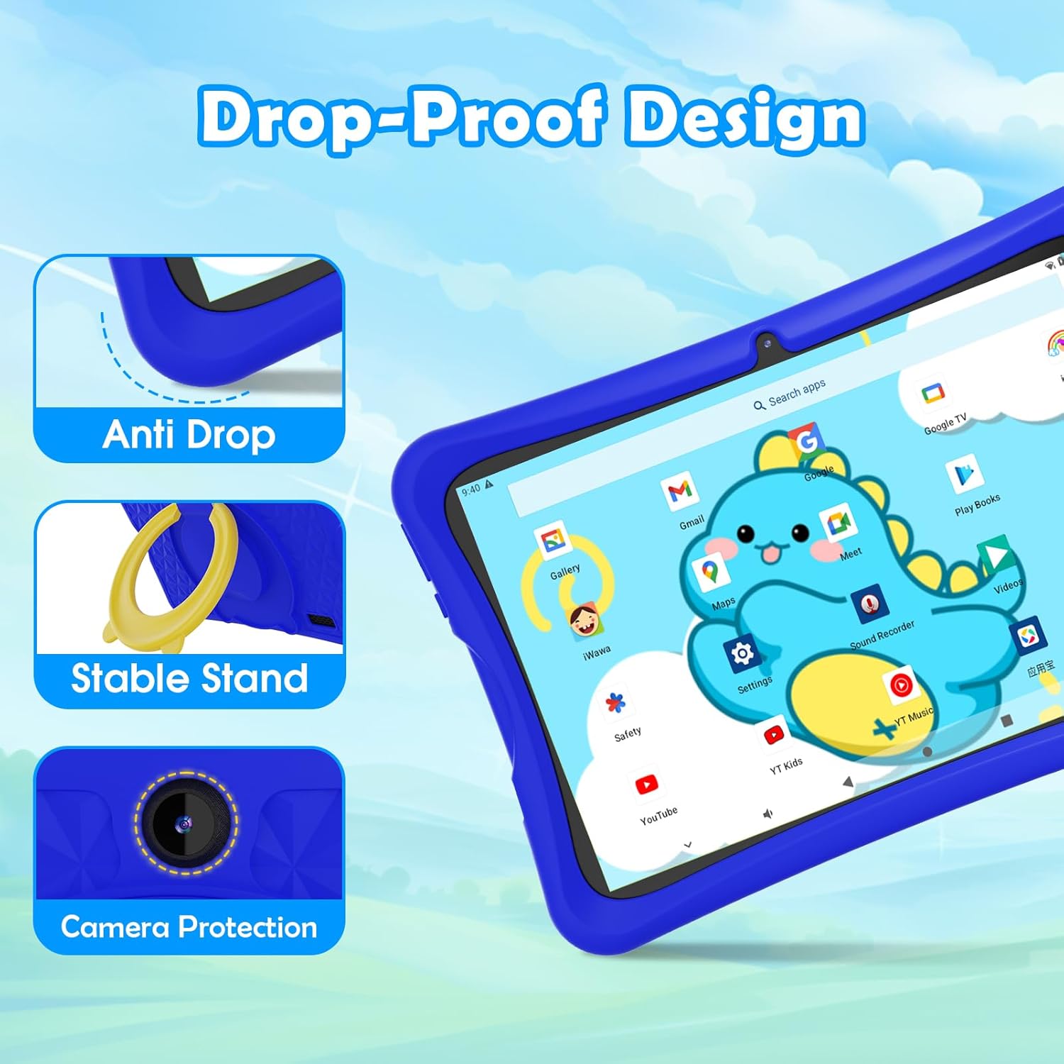 DigiLand Kids Tablet 10.1 inch,Android 15 Tablets,6GB RAM+32GB ROM (Expand to TF) Parental Control,Kids Software Pre-Installed,Dual Camera 2MP+5MP,Android Learning Tablet with Proof Case(Blue)
