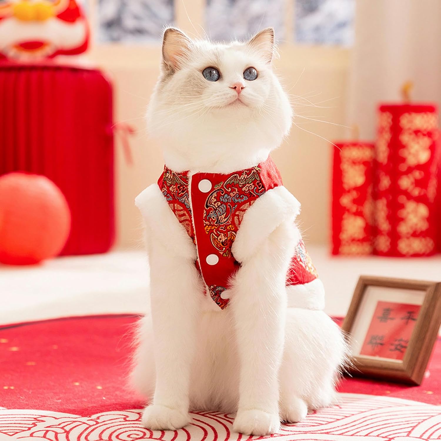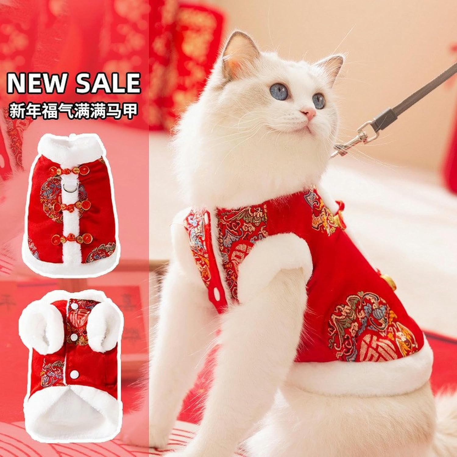 Dog Costume Adult Cat Kitten Cat Clothes Festive New Year Tang Suit Vest Puppy Dog clothes Pet New Year Cat Clothes-b-xl