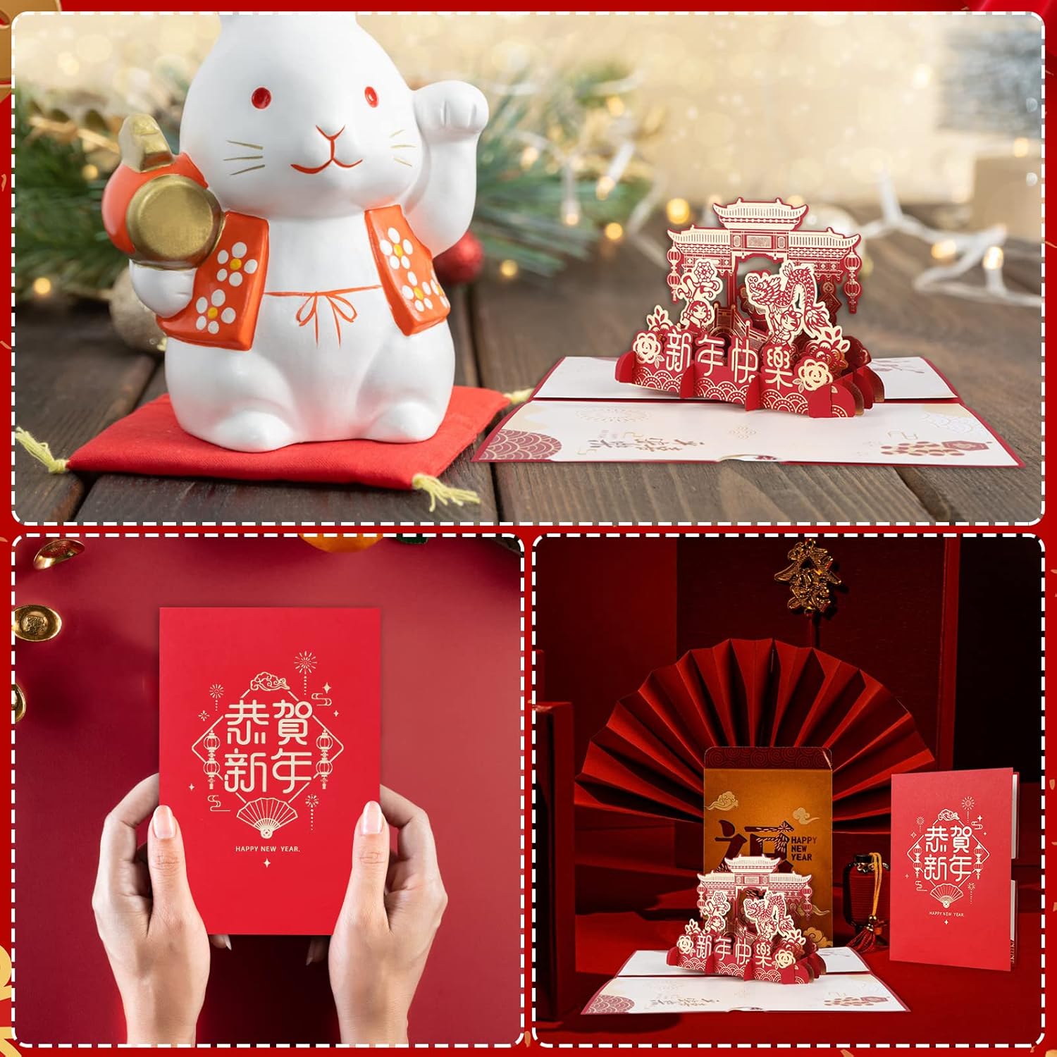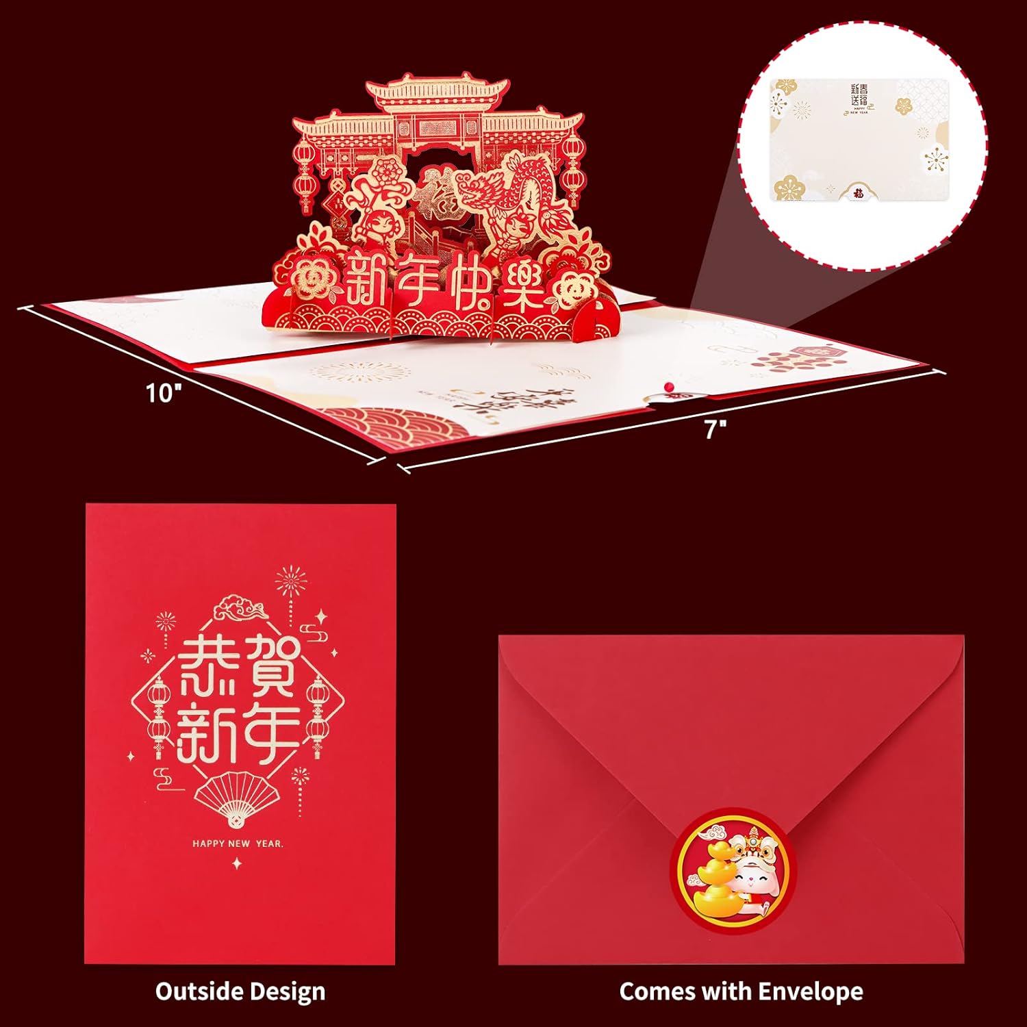 【Premium Card and Envelope】: Chinese new year pop up card made of thick cardstock and hand-assembled by professional skilled craftsmen for a perfect finish,Great Chinese new year cards for lunar new year spring festival party favors supplies.