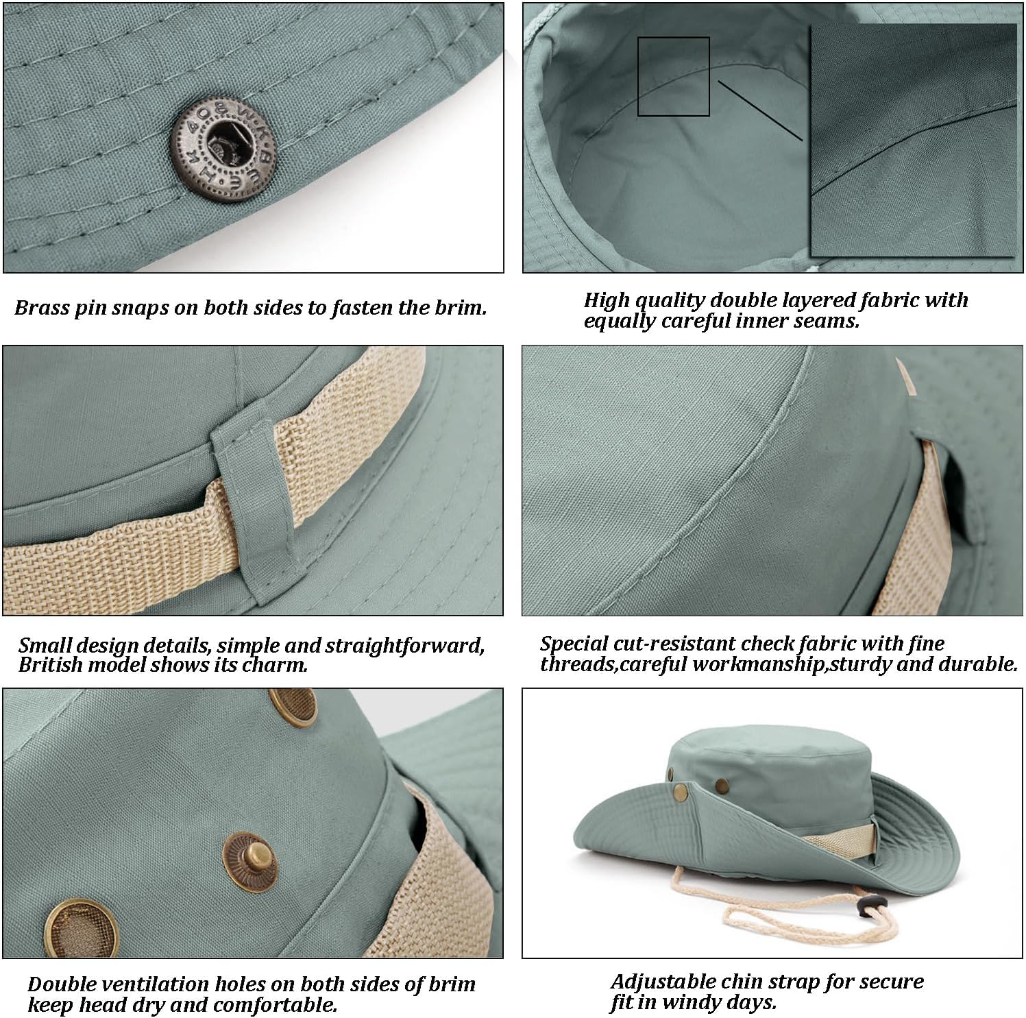 Favuit Sun Hats Safari Hat UV Protection Wide Brim Summer Hat Cotton Foldable Fishing Hiking Cap Breathable Cowboy Style Boonie Hat for Men Women Outdoor