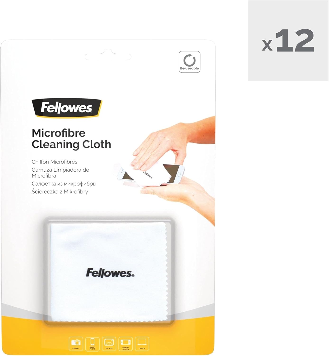 Fellowes Microfibre Cleaning Cloth for Home and Office – Monitor/Laptop/iPad/Mobile Phone/Tablet – Pack of 12 – White – Amazon Exclusive