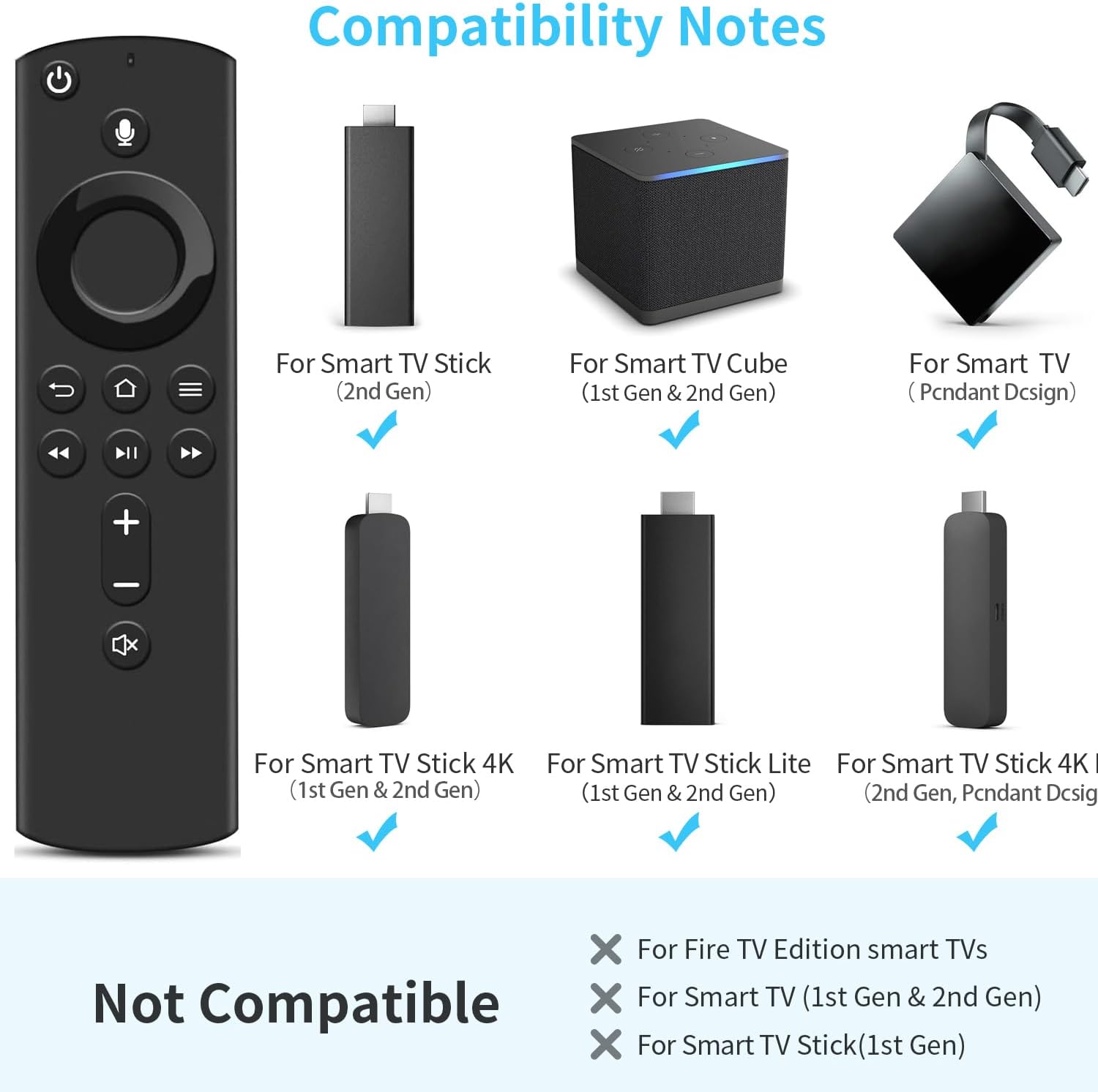 [ Not Compatible Models ] Not compatible with Smart TV (1st and 2nd Gen), Smart TV Stick (1st Gen), or Smart TV Edition TVs.