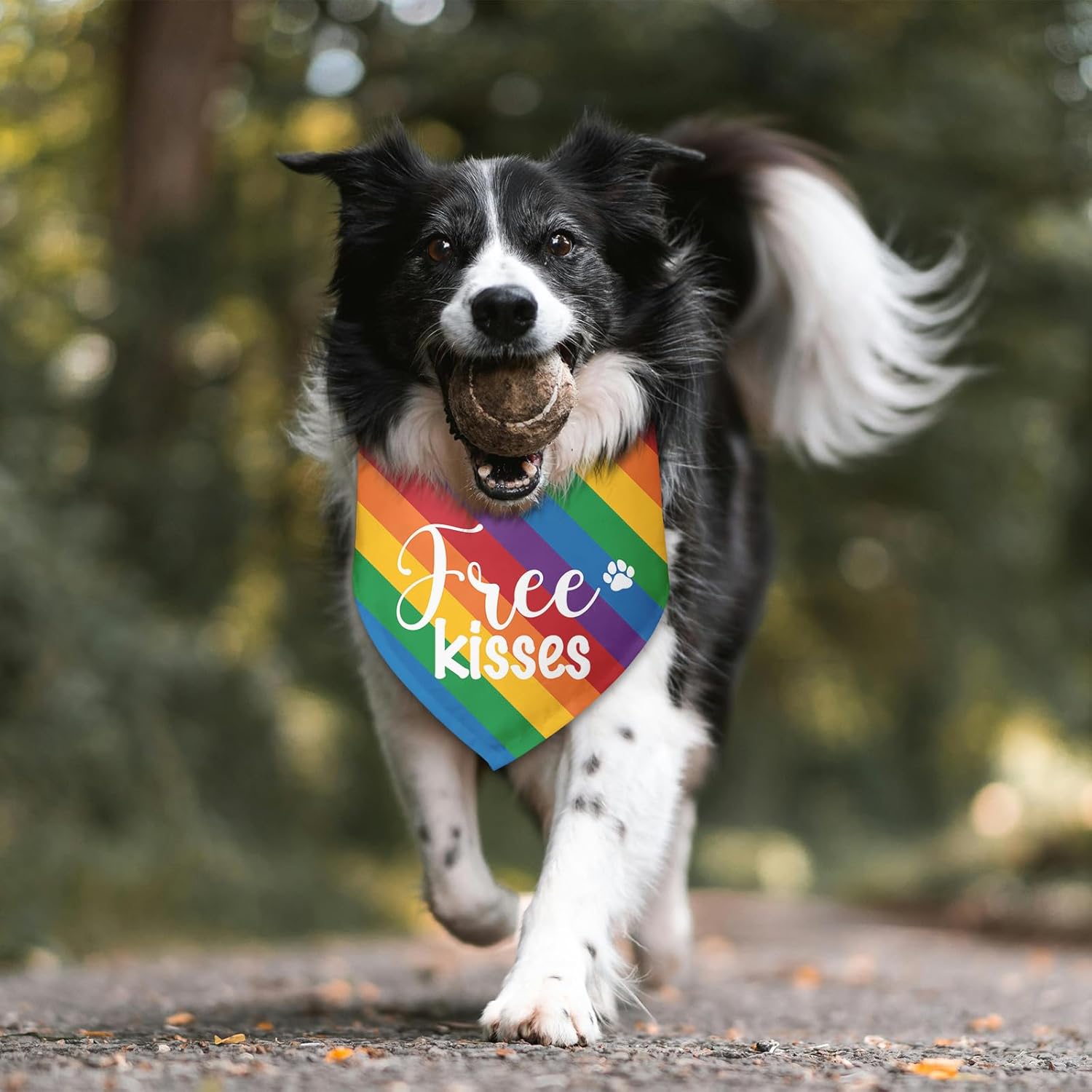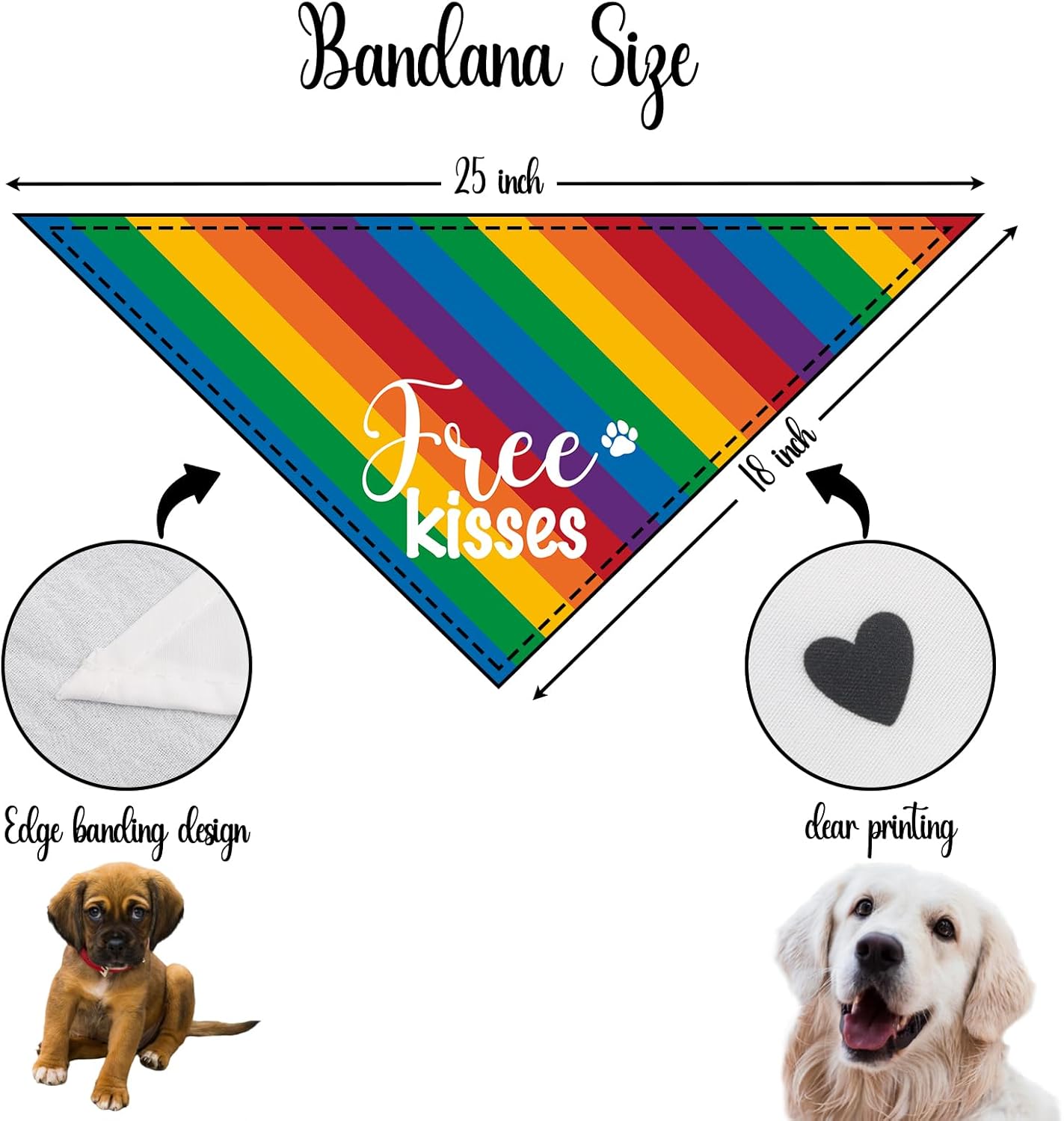 Free Kisses Pride Dog Bandana, Funny Gifts Rainbow Dog Bandanas for Dogs Owners LGBTQ+ Pet Accessories for Pride Month Love is Love Pet Scarf for Small Medium Dogs & Cats
