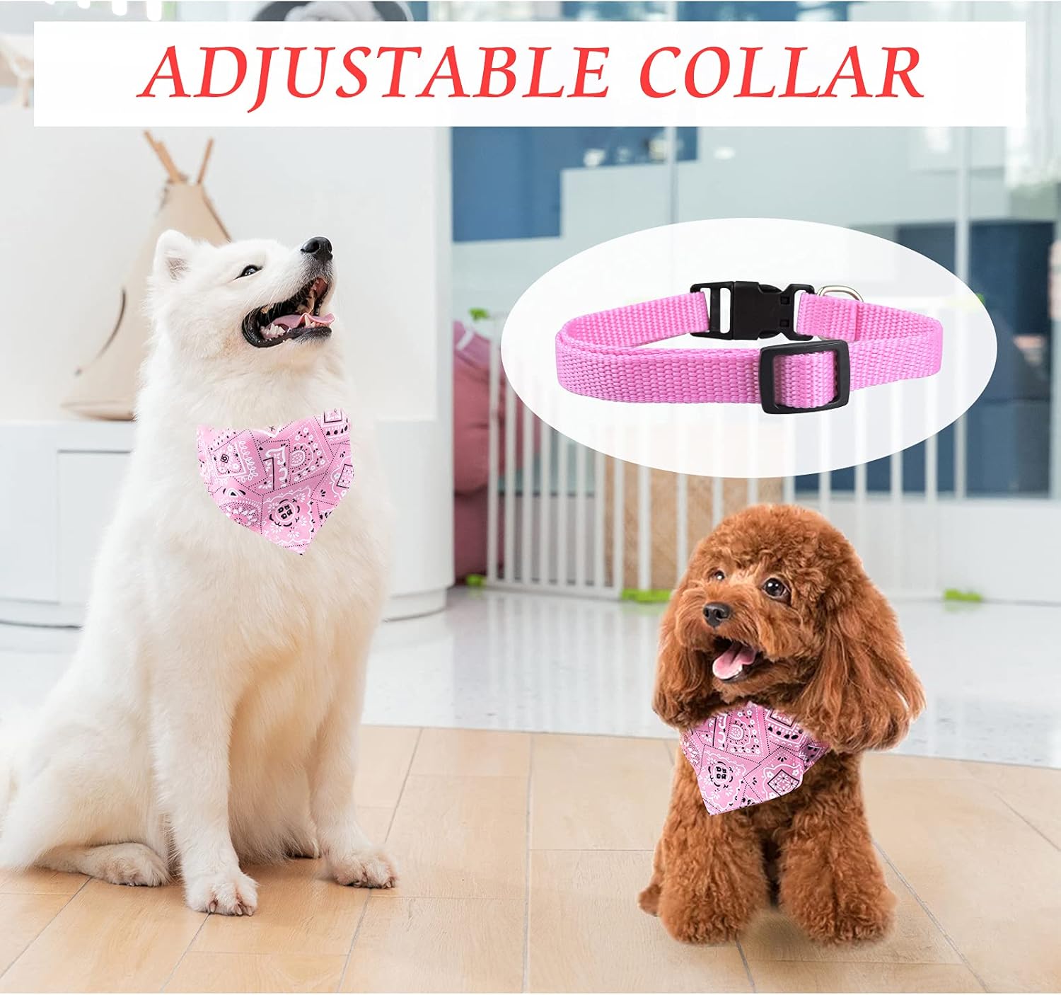FuninCrea Dog Bandanas Collar, Triangle Towels Washable Bibs Scarf Adjustable Bandanas Flower Pattern Dog Collar Costume Accessories for Small Medium Large Dogs (pink)