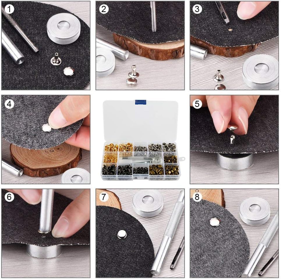 Gasea 420 Sets Leather Rivets Kit – Double Cap Rivets with 3 Fixing Tools, Metal Studs for DIY Leather Craft, Clothing & Accessories 6mm, 8mm, 12mm