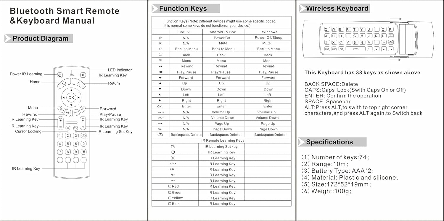 Gowell Smart Remote Controller Specifically Compatible with Amazon Fire TV Stick Mini Keyboard and IR Learning Works with Android TV Box Windows Raspberry PI