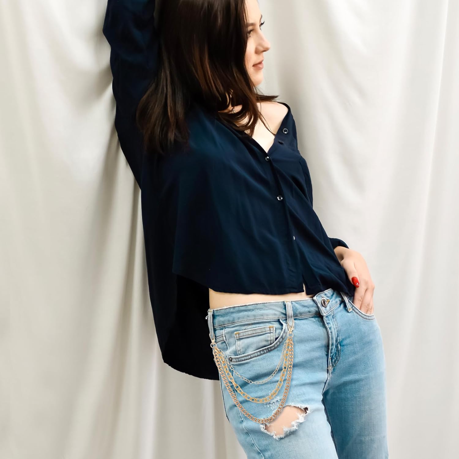 Grevosea Gold Pants Chains, Heavy Duty Hip Hop Punk Jeans Chain 3-Layer Metal Wallet Chains for Men Women Clothing Goth Accessories Belt Chain