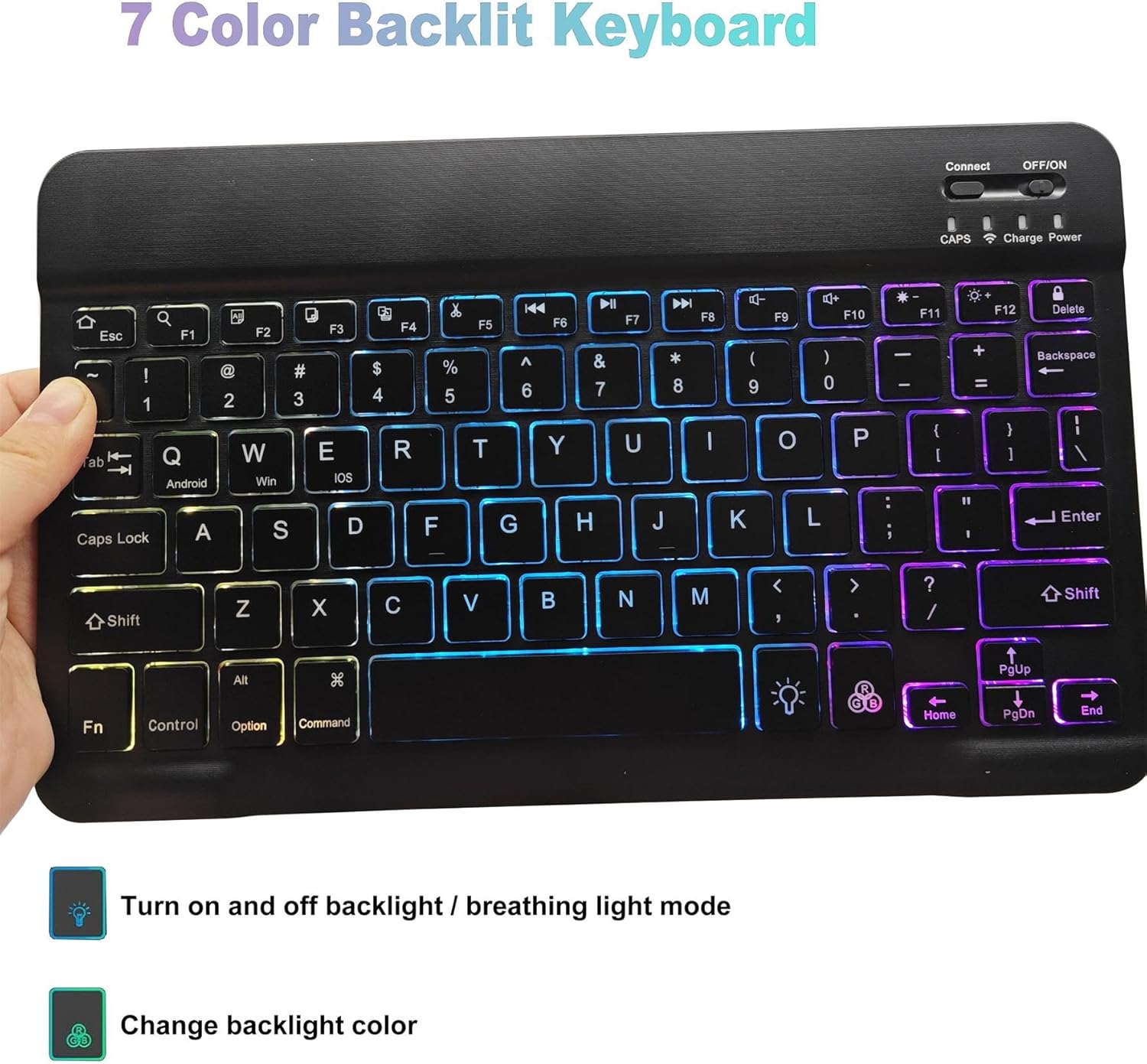 GYSDCAZ Keyboard Case for Amazon Kindle Fire HD 10&10 Plus (2021&2023) 10.1 inch, 7 Color Rainbow Backlight Detachable Bluetooth Keyboard with Mouse