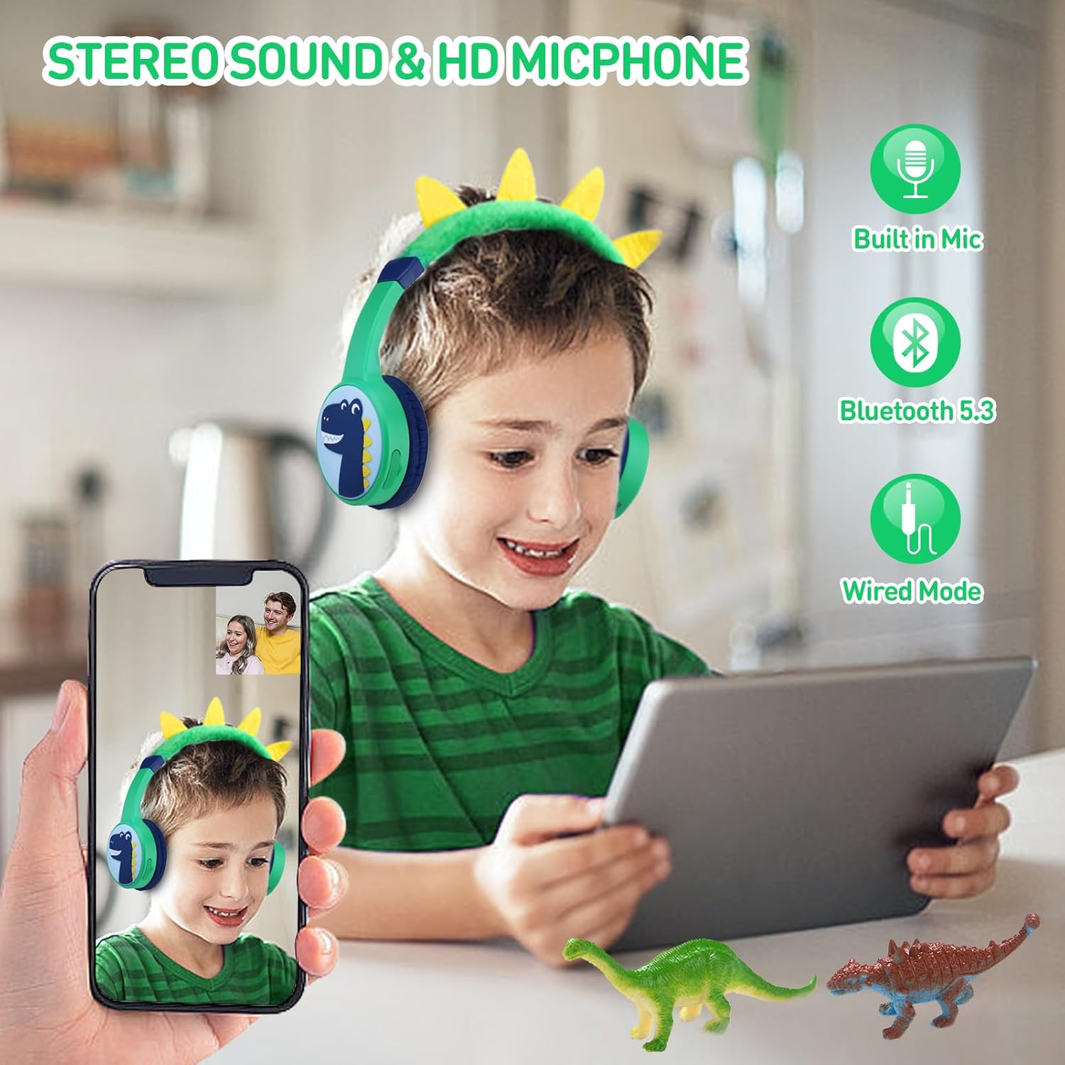 Wireless Kids headphones Bluetooth 5.3 with 85dB volume limited – Dinosaur Style