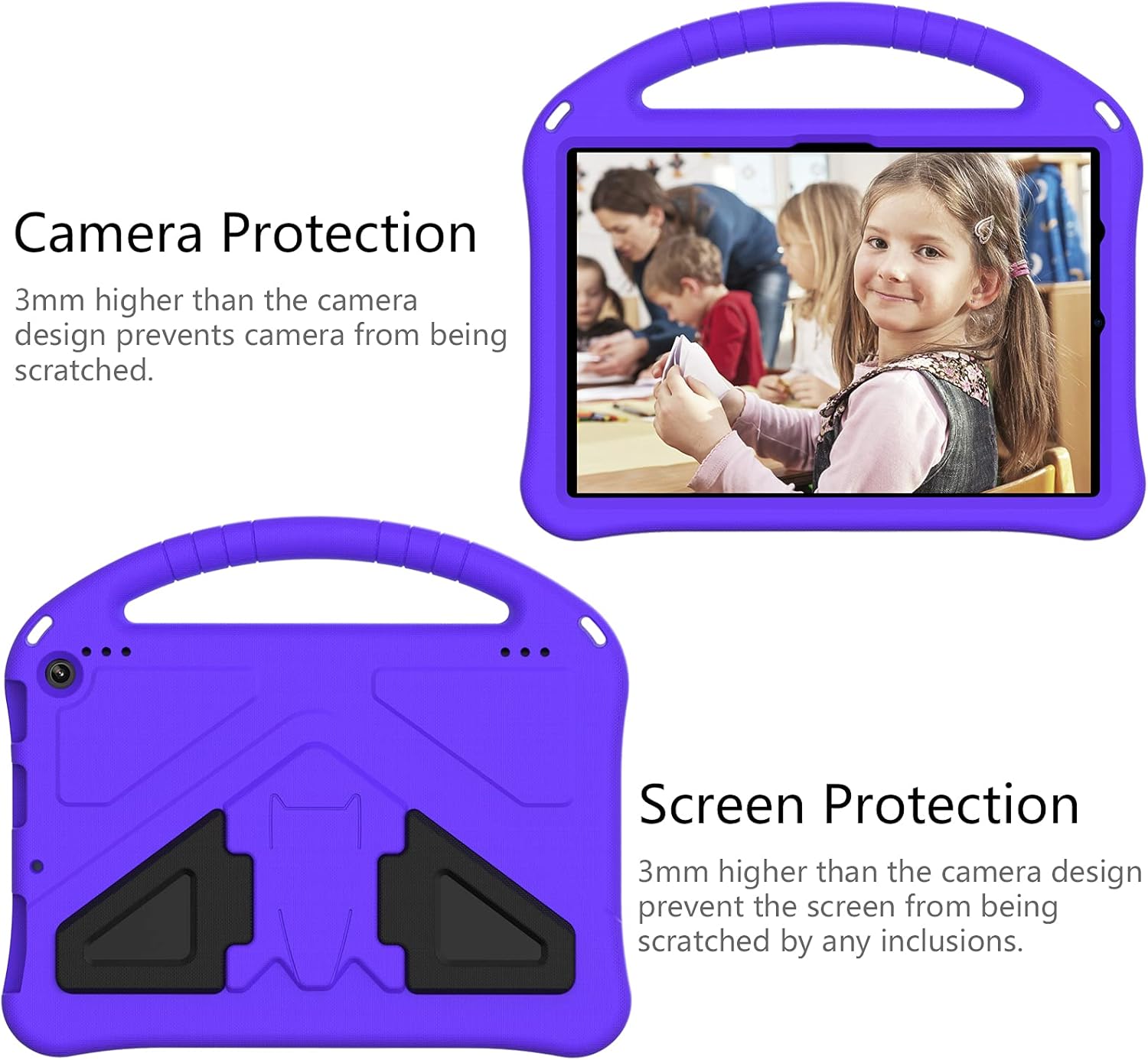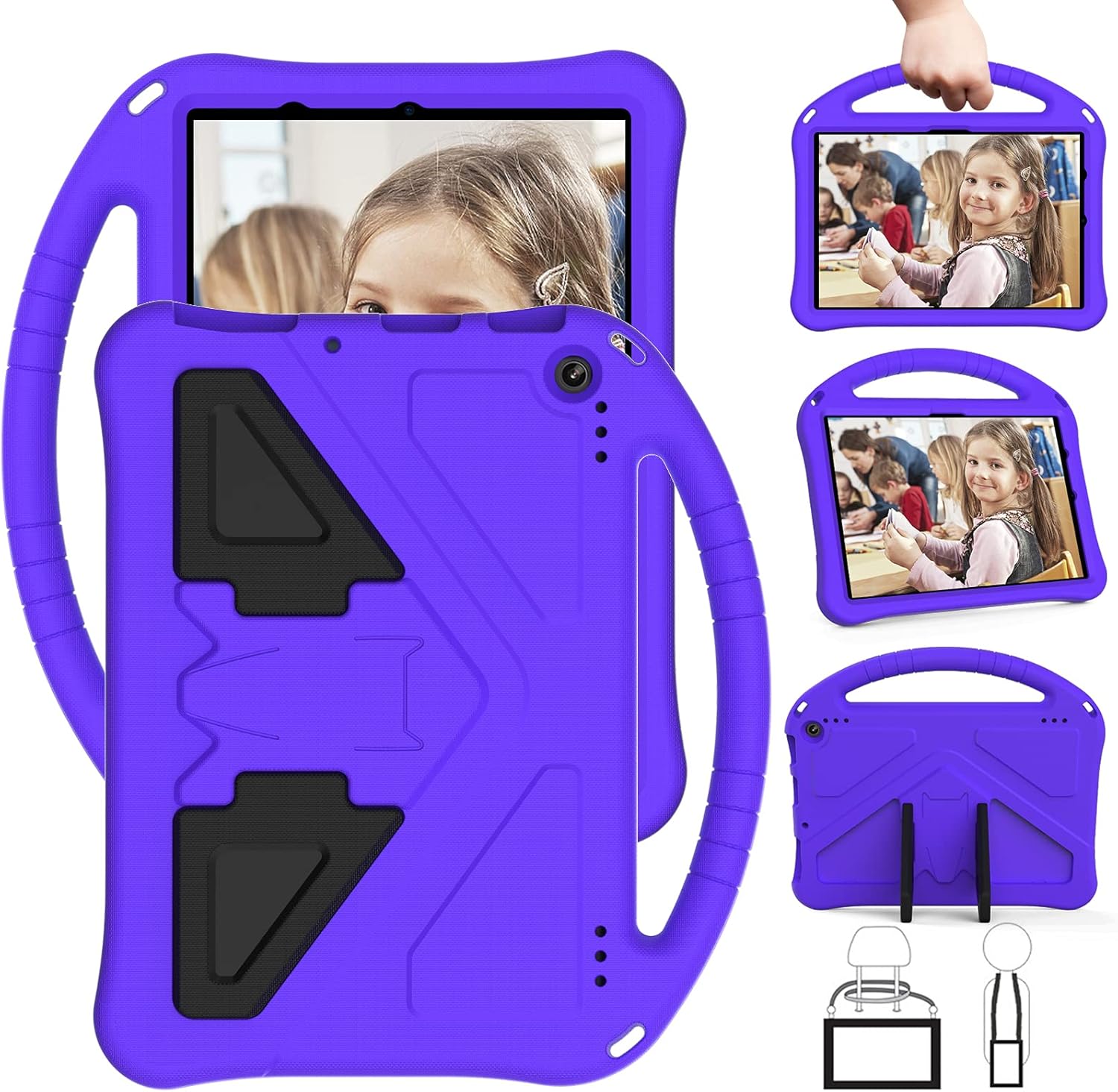 Features: Shock Protection Made of ultra-light, skin-friendly,foam material, protects your tablet from daily bumps and scrapes. Precise Cutouts Customized openings allow to access to all ports, buttons and cameras without removing the case. Stable Stand Built-in 2 foldable bases to prop your tablet up on the desk for hands-free horizontal viewing or typing. Top Handle Anti-slip and comfortable grip handle is great for outdoor activities. Package List: 1*Tablet Case 1*Shoulder strap