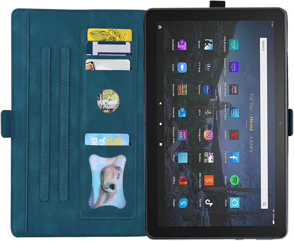 LMFULM® Case for Amazon Kindle Fire HD 10 2015/2017/ 2019 (10.1 Inch) PU Leather Case Protective Shell Smart Case with Sleep/Wake Stand Case Flip Cover Embossing Love Butterfly Blue