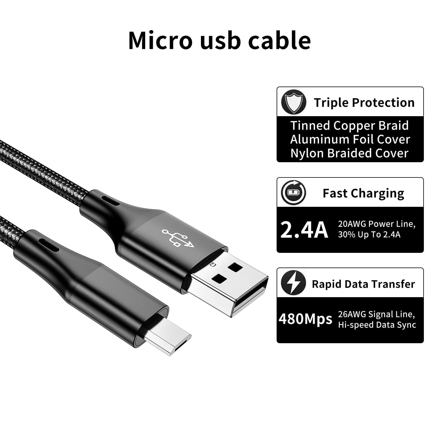 5M 1Pack micro usb cable, 7-24 hours fast response and friendly customer service.