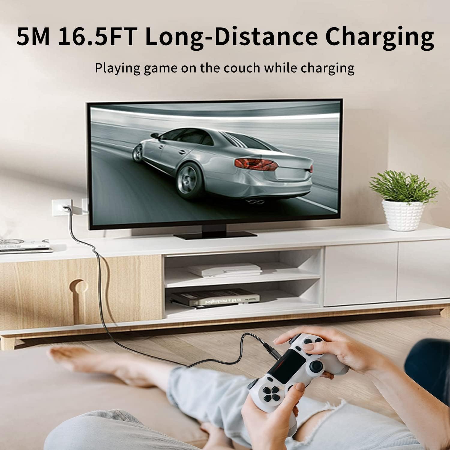 【Extra Long 5M Micro Charging Cable】 This micro charging cable is perfect for charging and syncing data over long distances to add more power to your phone, PS4 controller, X-Box controller and other devices within a 5M range for multiple charging.
