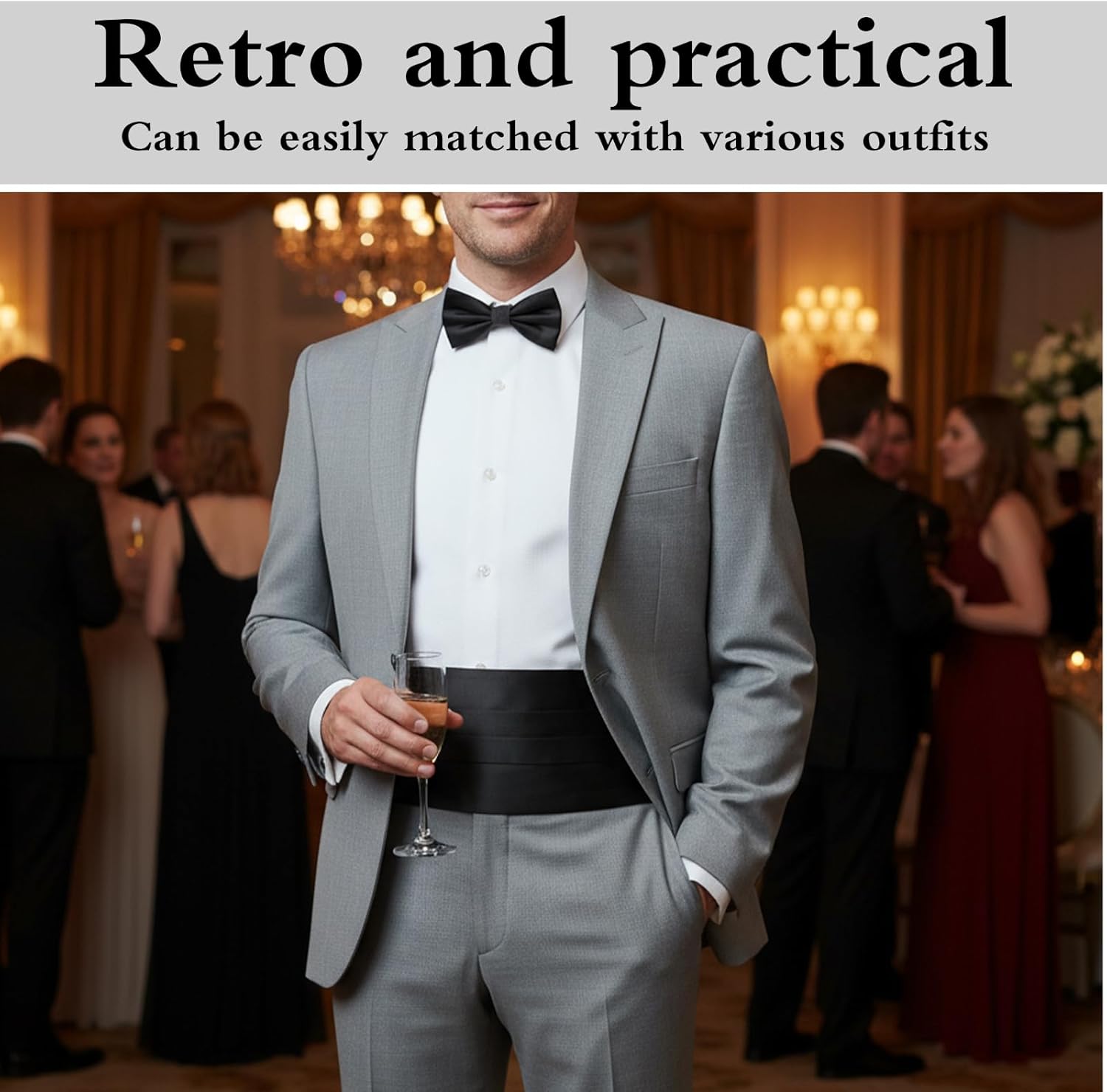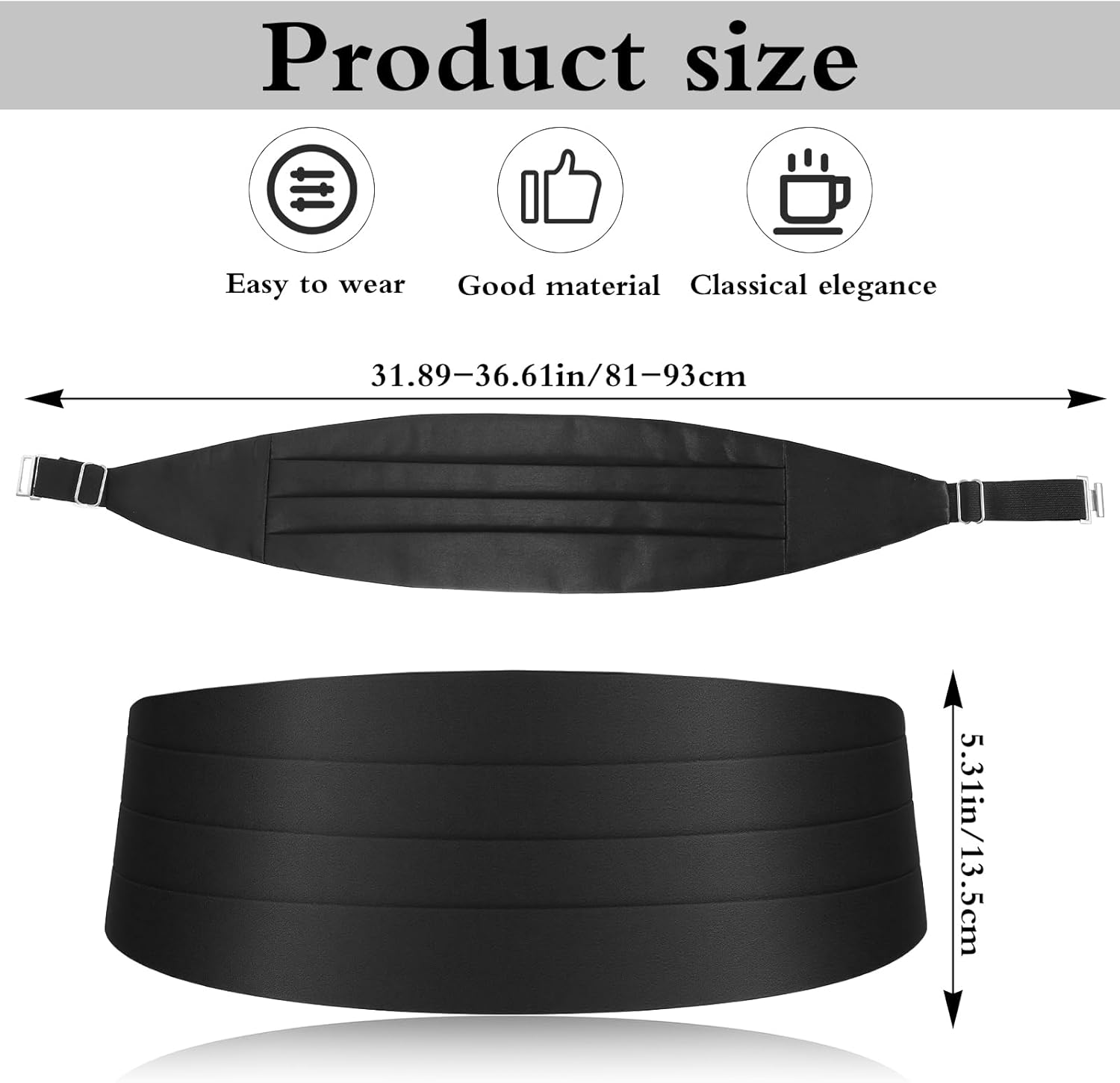 Men’s Cummerbund, 33.5 Inch Solid Black Tuxedo Belt with Adjustable Elastic Band, Formal Wedding Suit Accessories for Men