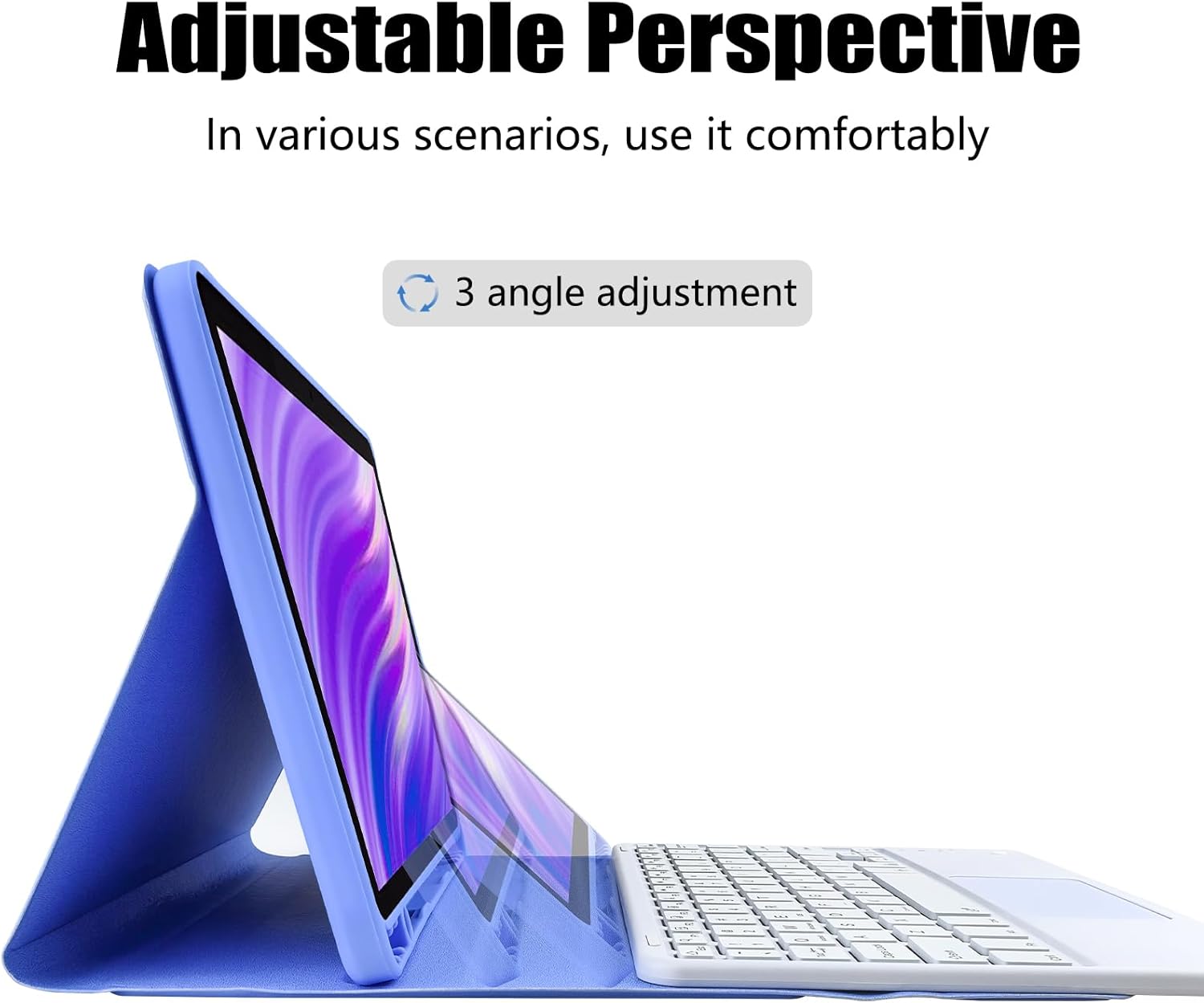 Multi-Angle Adjustment + Precision Cutting-The keyboard cover supports multi-angle adjustment, allowing you to use it comfortably in different environments. The cutting of the keyboard case is done by high-precision machines, allowing each hole to appear in position.