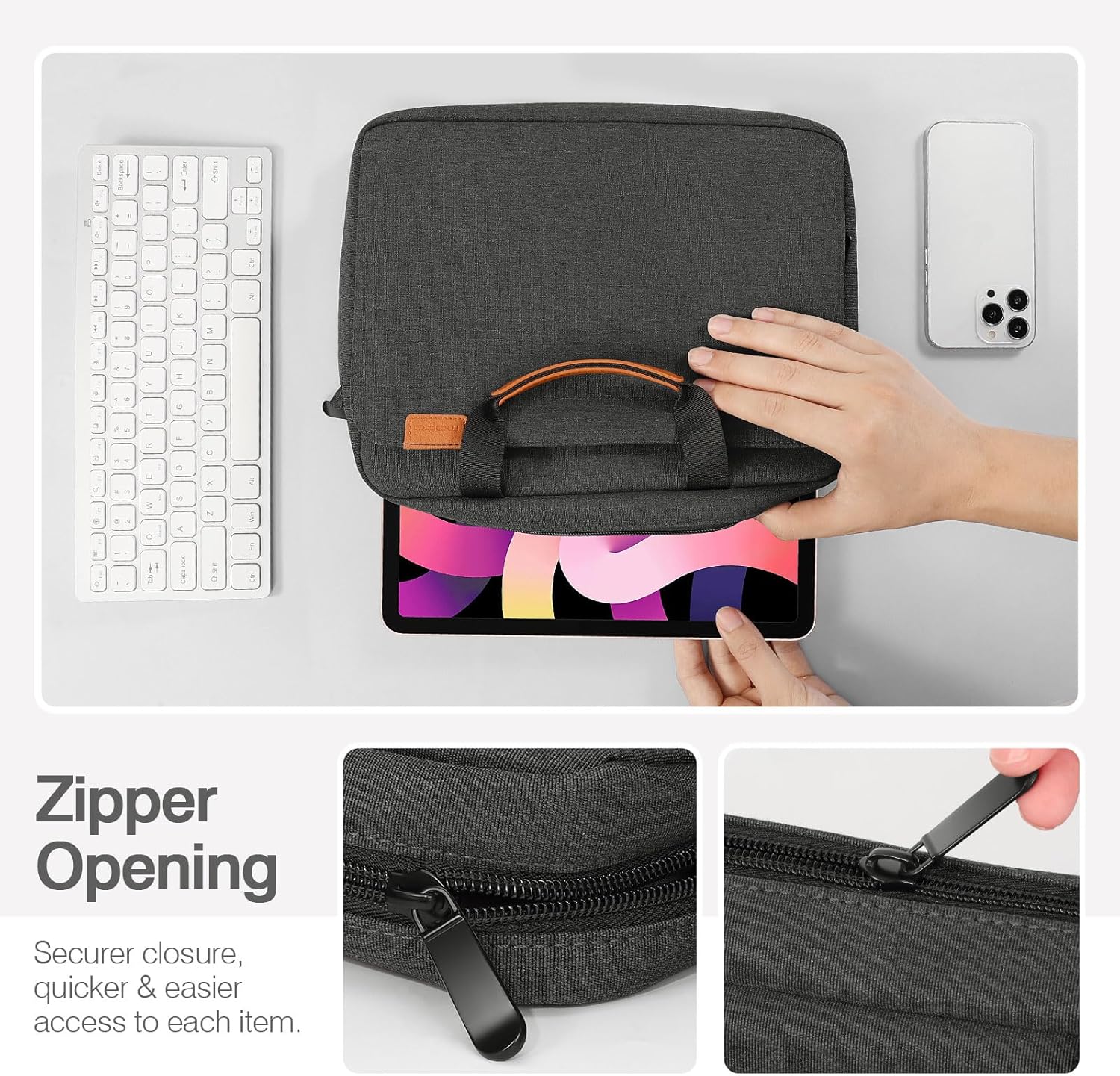 MoKo 9-11 Inch Tablet Sleeve Case, Protective Handle Shoulder Bag Fits 11inch iPad Air M3, iPad A16 2025, iPadPro M4/Air 5/4th 10.9, iPad10/9/8/7th 10.2, Tab S8/S9 11, Black & Gray