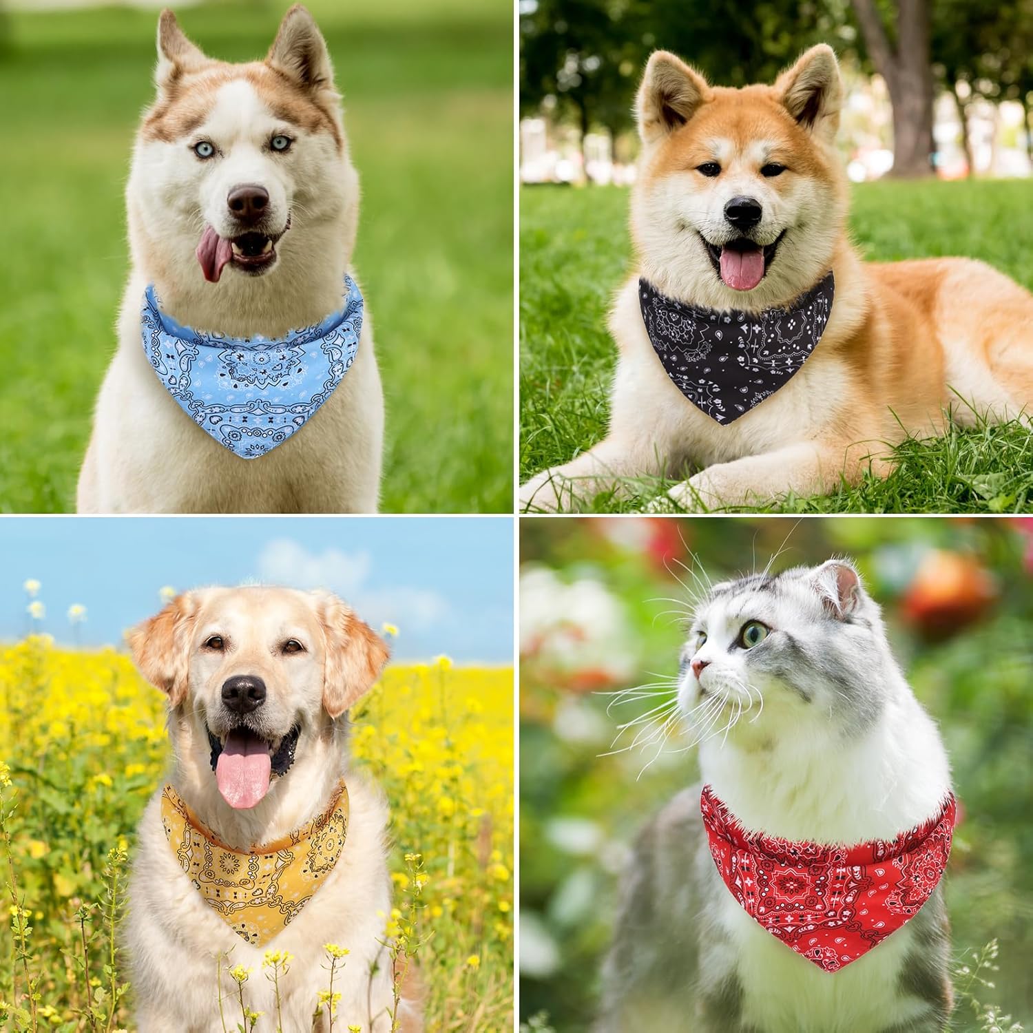 PACKAGE: 4 pcs pet bandanas in 4 colors, sufficient quantity and styles can meet your pet daily life needs