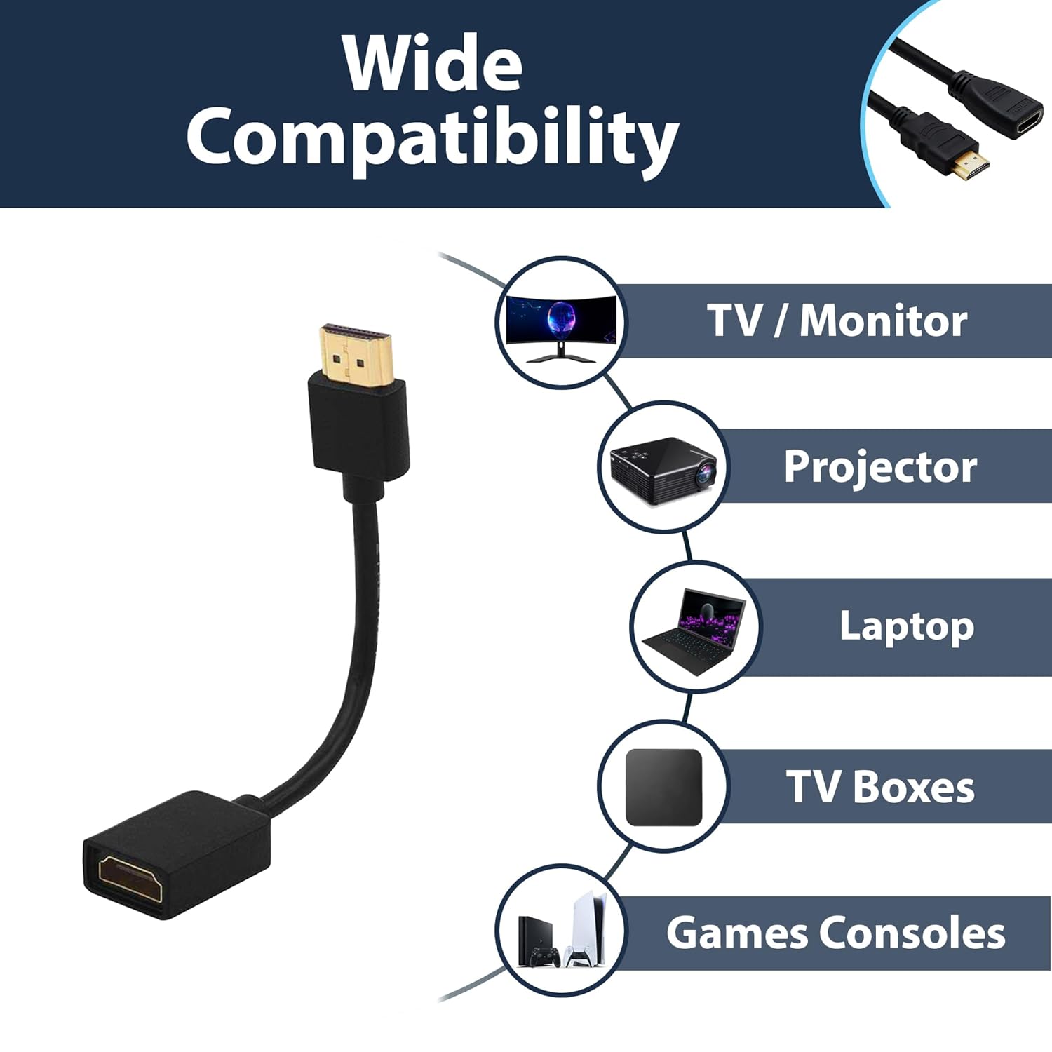 EXTEND HDMI PORTS – Extend the reach of your HDMI ports with our male-to-female HDMI Cable, allowing for easy access cable connections, especially ideal for use with wall-mounted TVs.