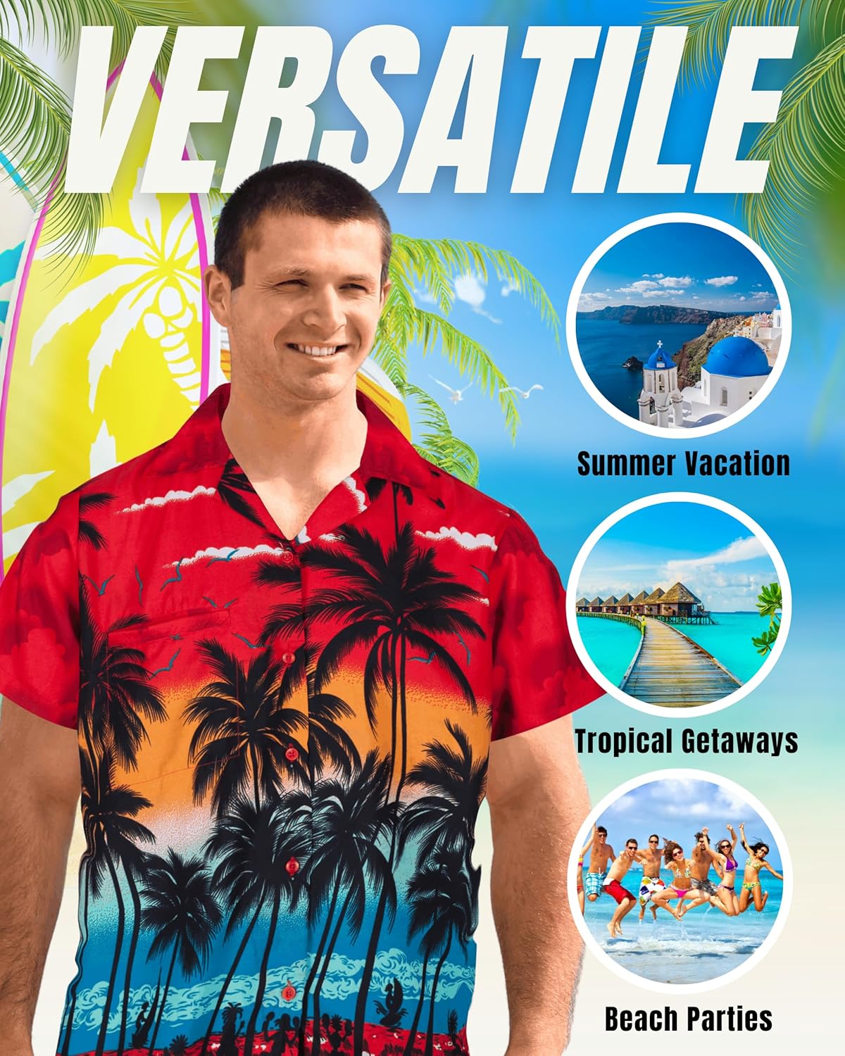 Summer is here which calls for a Hawaiian beach party in the garden. Grab your Hawaiian decorations, hawaiian dresses, grass skirts, flower garland neckalces and add the palm trees on floral shirt to top off the decorations. Hawaiian fancy dress mens style just got super easy with this bad shirt. Steer away from the common flame shirt and go all out on your festival clothes for men this year with a funny shirt like this palm tree sunset hawaii shirt. Mens festival clothes require colour and this array of mens hawian shirts with their casual fit make the ultime mens festival shirt. Stand out from the crowd dressed as magnum pi in a 70s shirt for men. Why stop at just a rainbow shirt? Go all out with a hawaiian shirt and shorts and a super cool hawaiian hat. It’s mens hawaiian fancy dress like you’ve never seen before. Hawiannan shirt mens from all over will be wearing with pride. Shot shirt mens casual loose fit and comfortable. Jazzy, loud, awful, floral, ugly and proud are what this men shirt truly is.