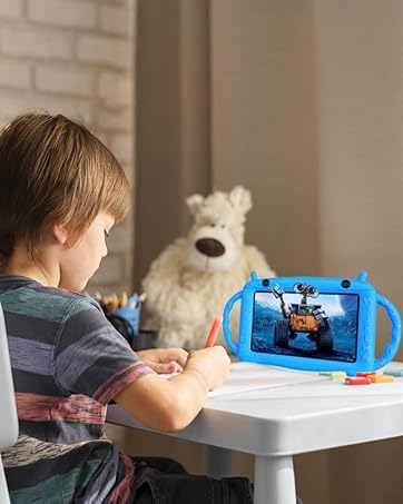 [Large Storage and Long-Lasting Fun]:With the powerful Android 13.0 OS and high-performance quad-core processor, This kids Learning tablet is sensitive and responsive. 3GB RAM, 32GB ROM, and expansion of 128 GB from SD card allow you download more apps or store more video, music or study materials. And 6000 mAh battery can last more than 6 hours.