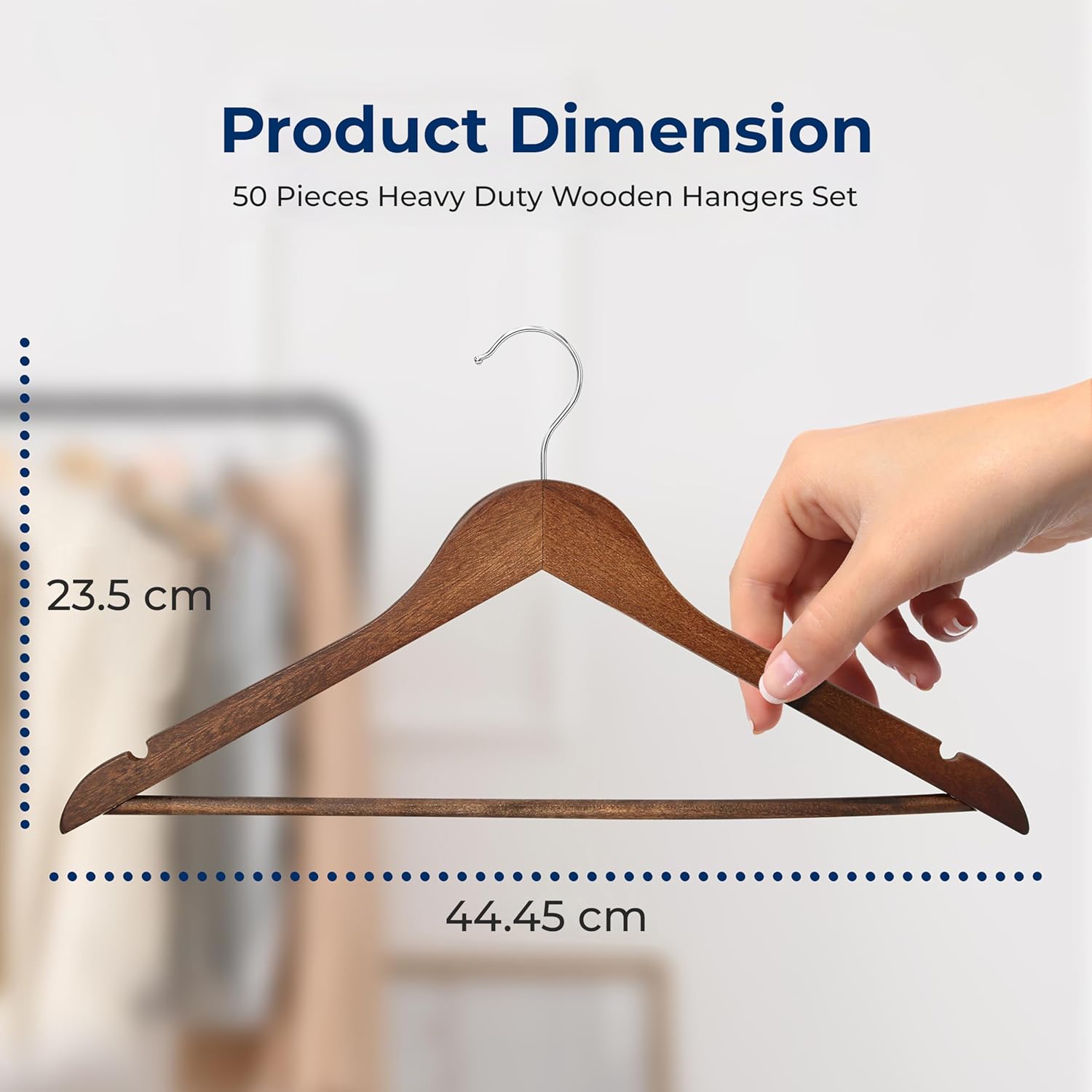 Functional Solid Wooden HangersHeavy Duty Coat Hanger SetSpace-Saving Closet HangersFrustration-Free hanging360 Degree Swivel Hook