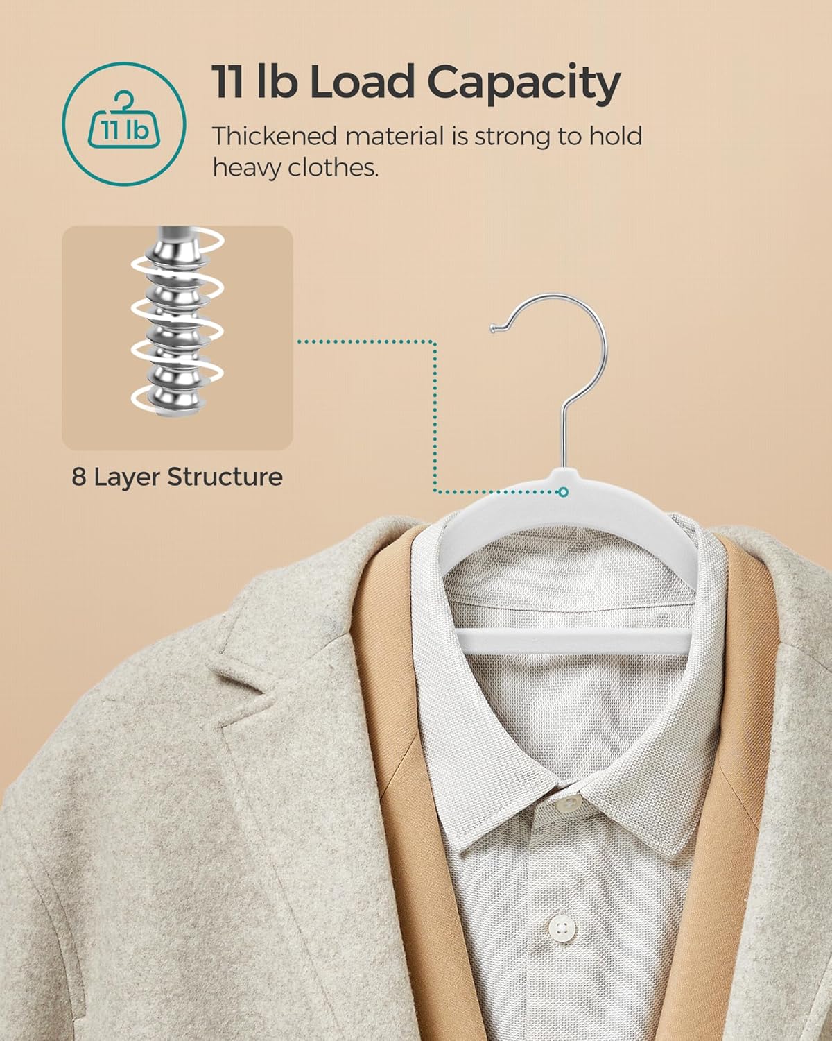 SONGMICS Set of 20 Velvet Hangers Hangers Non-Slip Small Bar for Ties 360° Rotating Hook 0.6 cm Thick Space Saving 43.5 cm Long for Coats Trousers Silver White CRF020W01