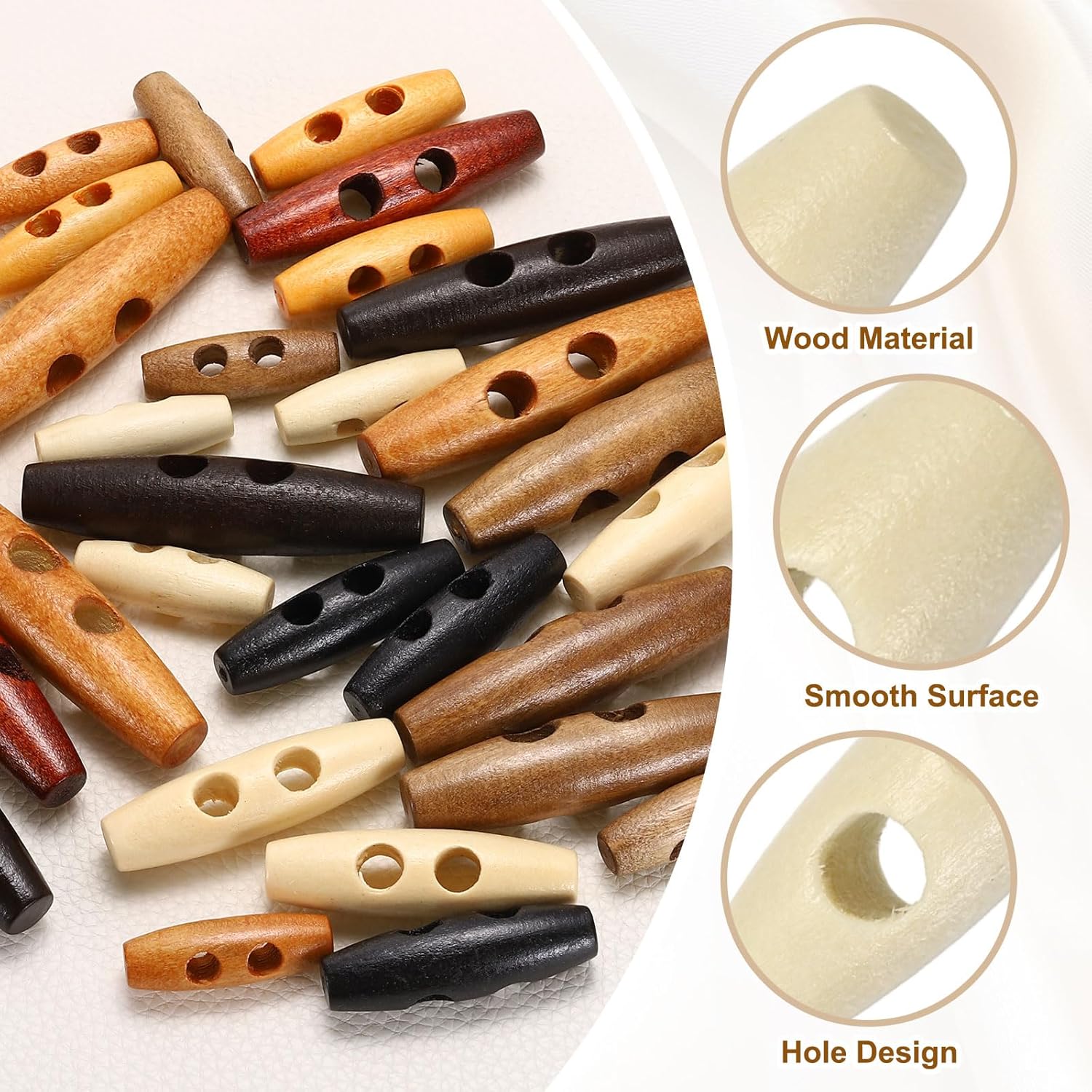 Enhance your DIY projects with our unique wood toggle buttons. Good for adding a touch of elegance to sweaters, coats, and a variety of sewing crafts, these practical buttons are great for clothing, bags, handbags, backpacks, leather accessories, and more. Whether you are working on a cardigan, shirt, jeans, or any other fabric creation, these buttons will elevate your designs and make your projects stand out.