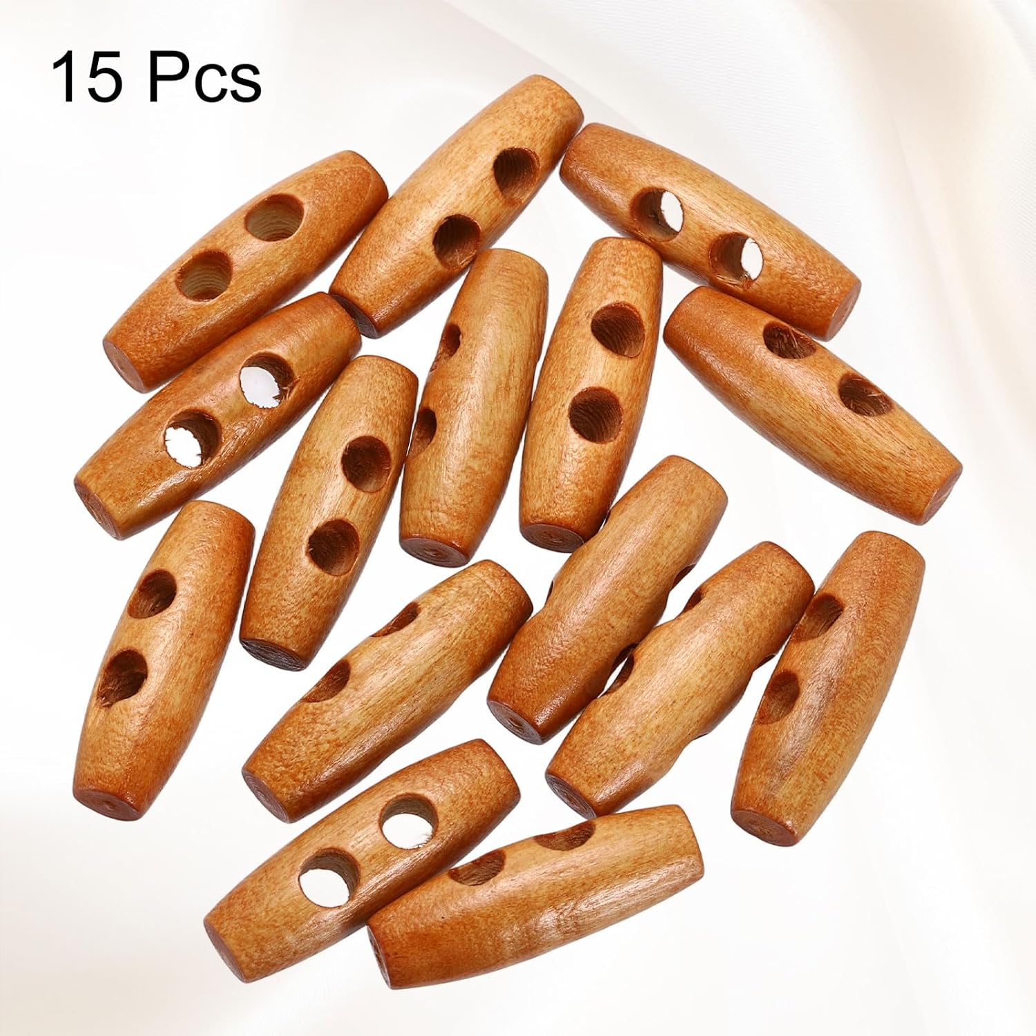 sourcing map 15pcs Wooden Toggle Buttons 30mm / 1.2″ Double Hole Wood Olive Horn Sewing Buttons for Coat Sweaters Clothing DIY Craft, Medium Brown