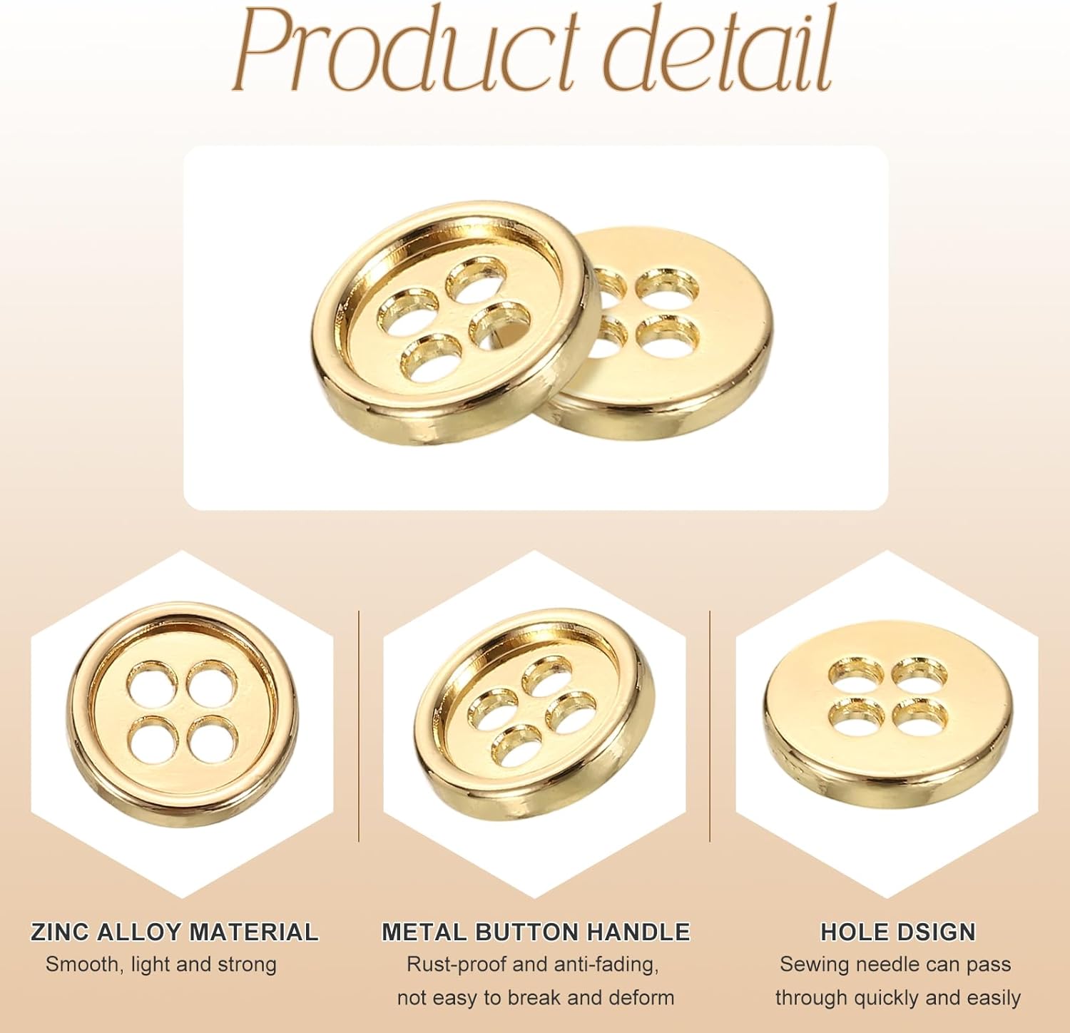 sourcing map 25pcs Metal Button 10mm (0.39″) 4 Holes Alloy Round Buttons Craft Sewing Accessories for Clothing DIY Crafts Decoration, Gold