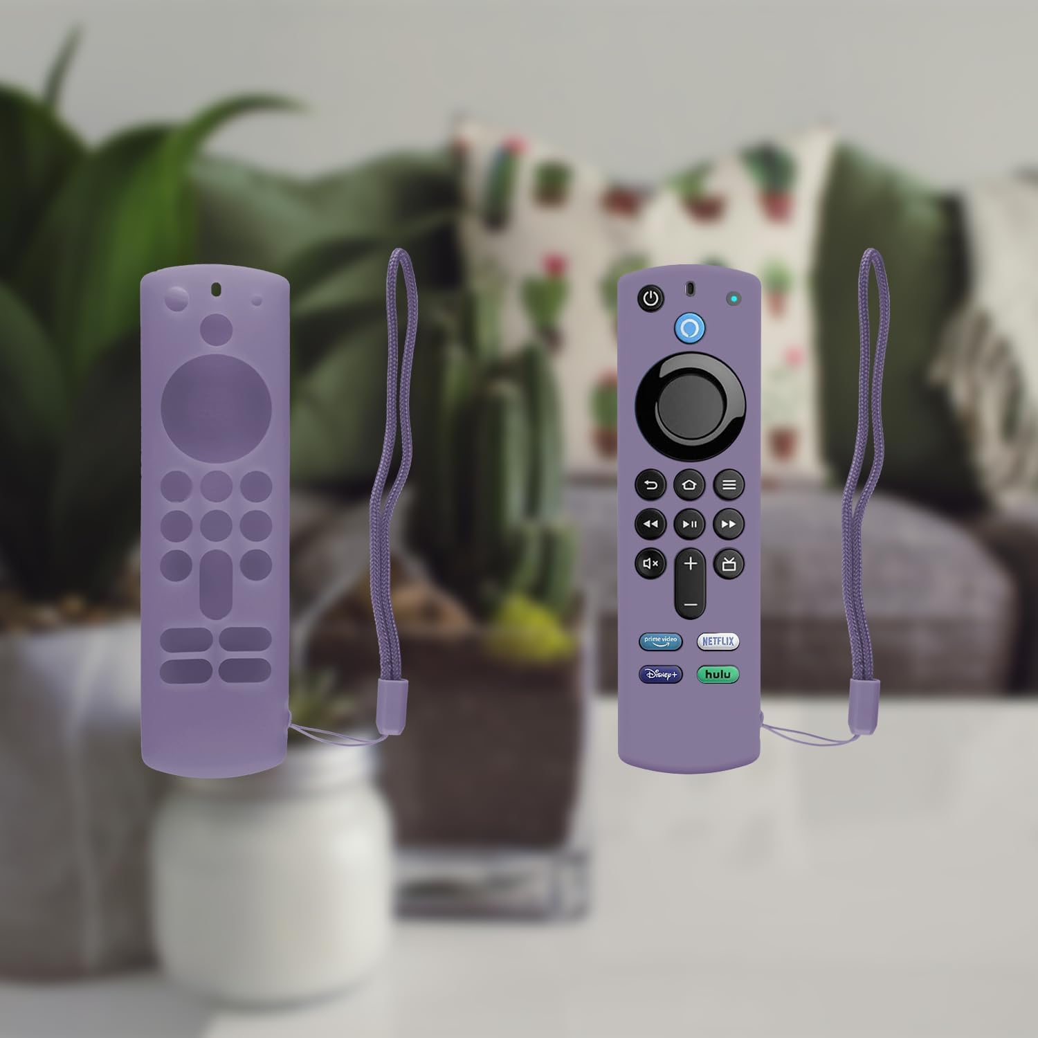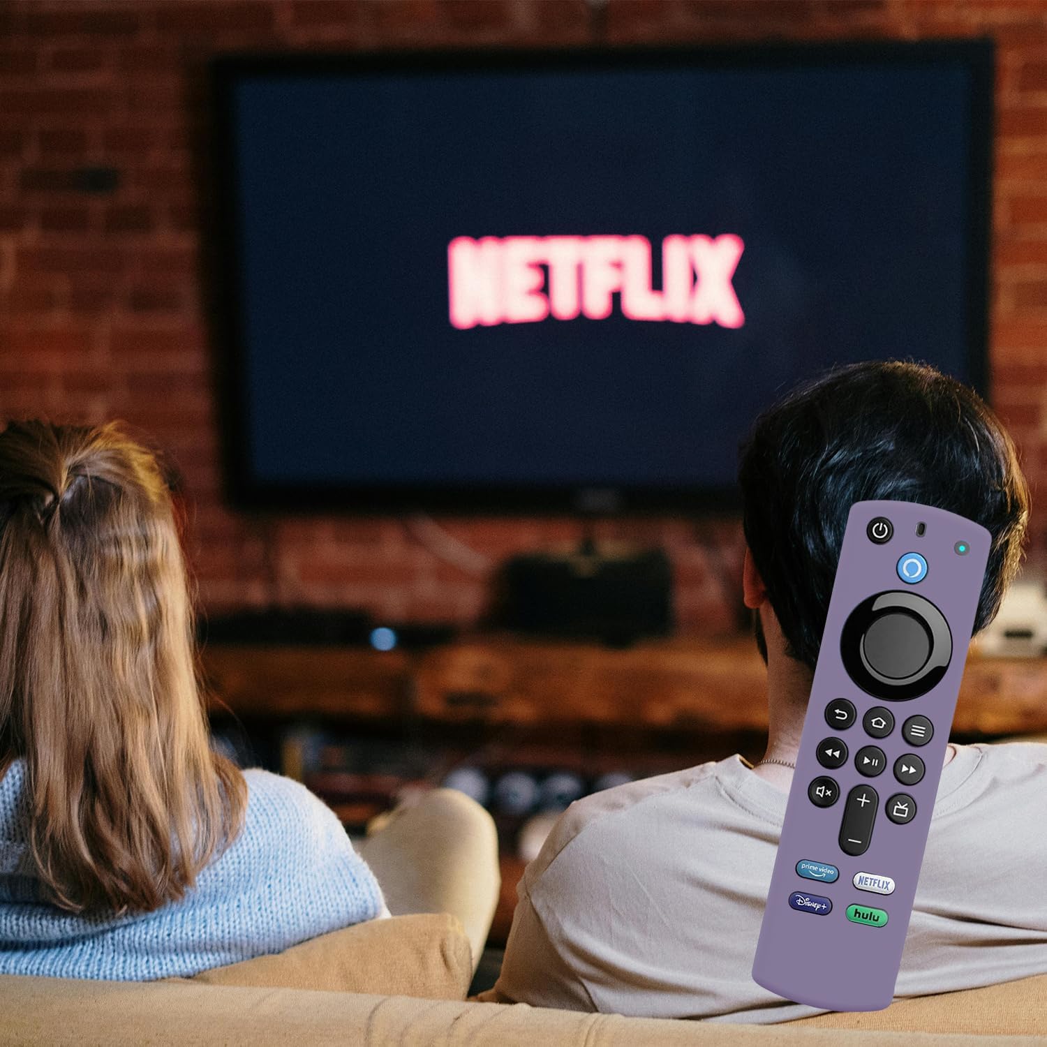 Tabanzhe Firestick Remote Cover Case-Glow in the Dark Remote Control Cover for Alexa Voice Remote 3rd Gen Silicone Protective Case Remote Replacement Cover(Green and Purple)