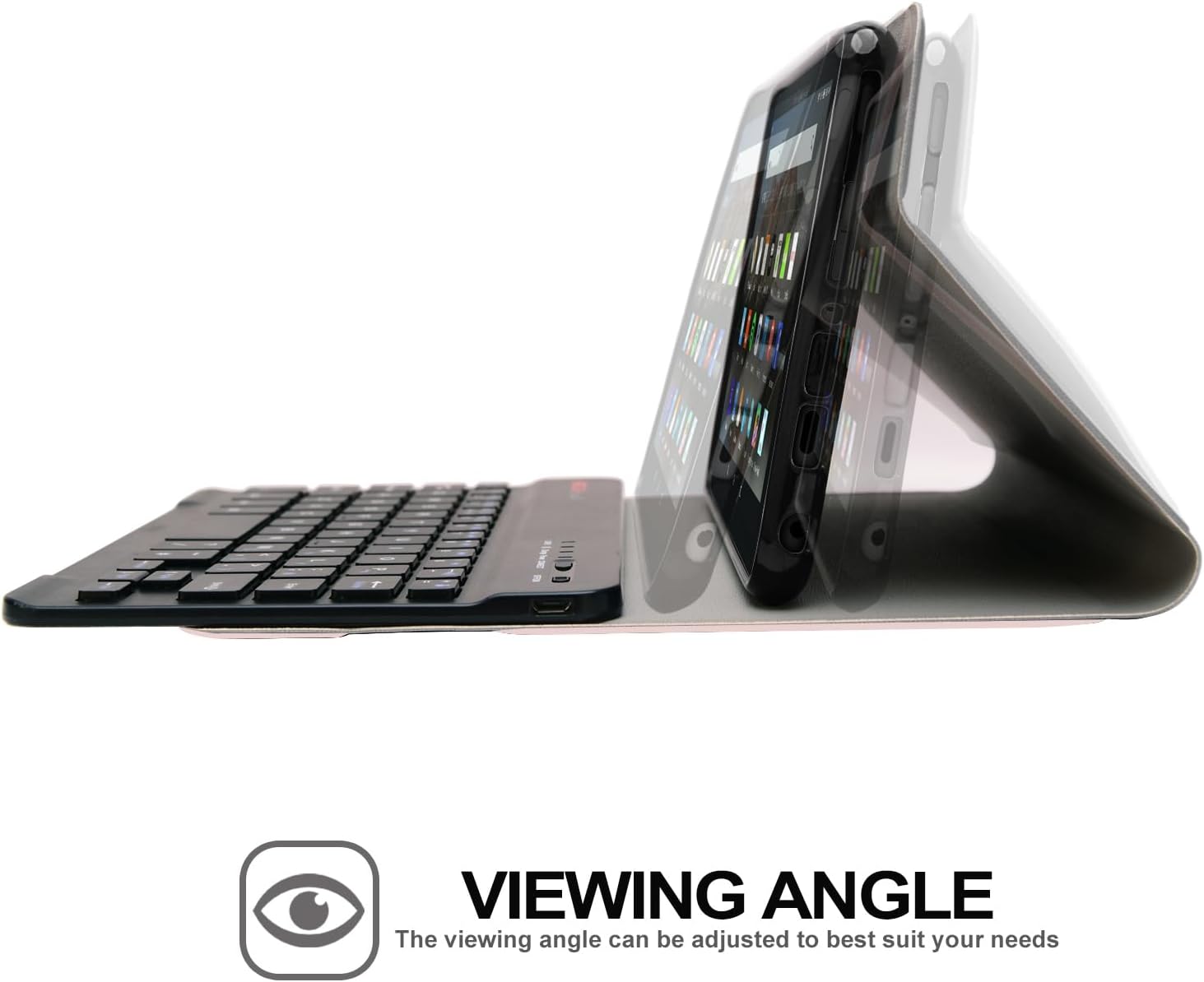 PU Leather Case with a detachable Bluetooth. The wireless keyboard connects with your Device via the Bluetooth interface. The keyboard can be detached from the case, this allows you to place it in a more comfortable typing positions. This case is supplied with a UK standard QWERTY keyboard layout and design. Moreover, this keyboard comes with a built-in rechargeable battery (charging cable included) that has an extremely long battery life. You can type for hours without needing to charge the keyboard. When the keyboard is inactive for a short while, it will automatically go into the energy-conserving sleep mode. All you need to do for the keyboard to wake up is to press any key. You can also adjust the viewing angle of the case based on your needs.