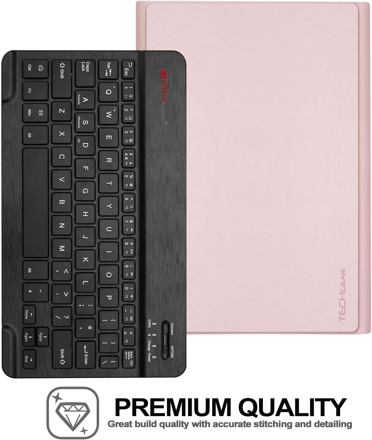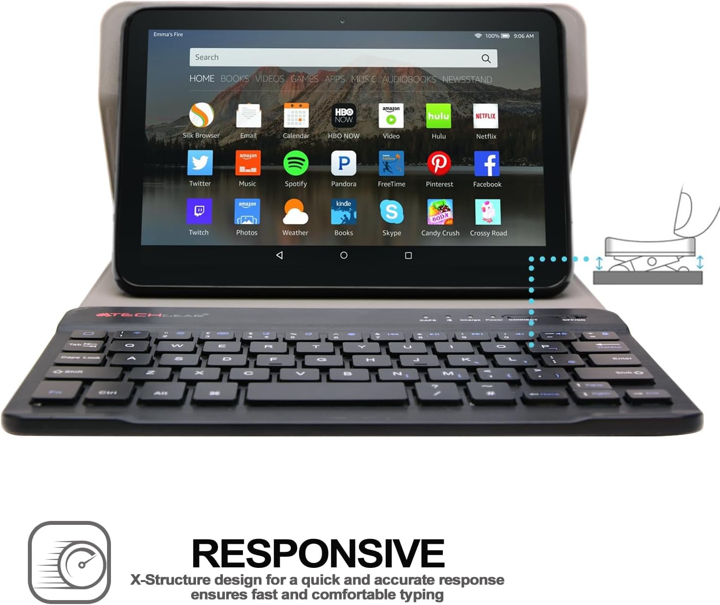 [Amazon Fire HD 8 14th & 12th Generation Keyboard Case] Detachable Keyboard (magnetic), allows for more comfortable typing positions. ABS Plastic keys rather than the rubberised keys on most other keyboard cases.
