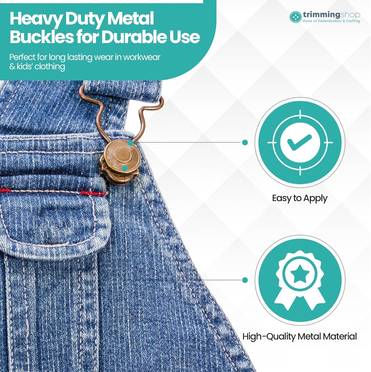 Each dungaree buckle measures 30mm at the base, making them ideal for standard bib overalls, denim dungarees, jumpsuits, and most types of workwear.