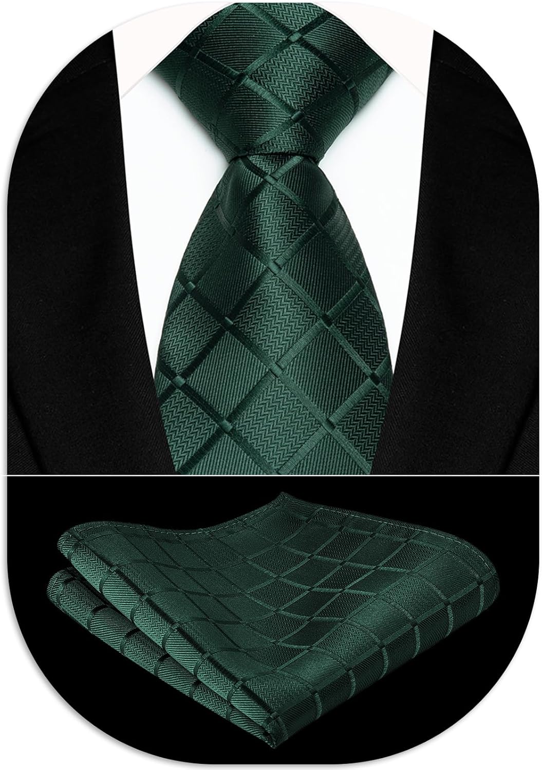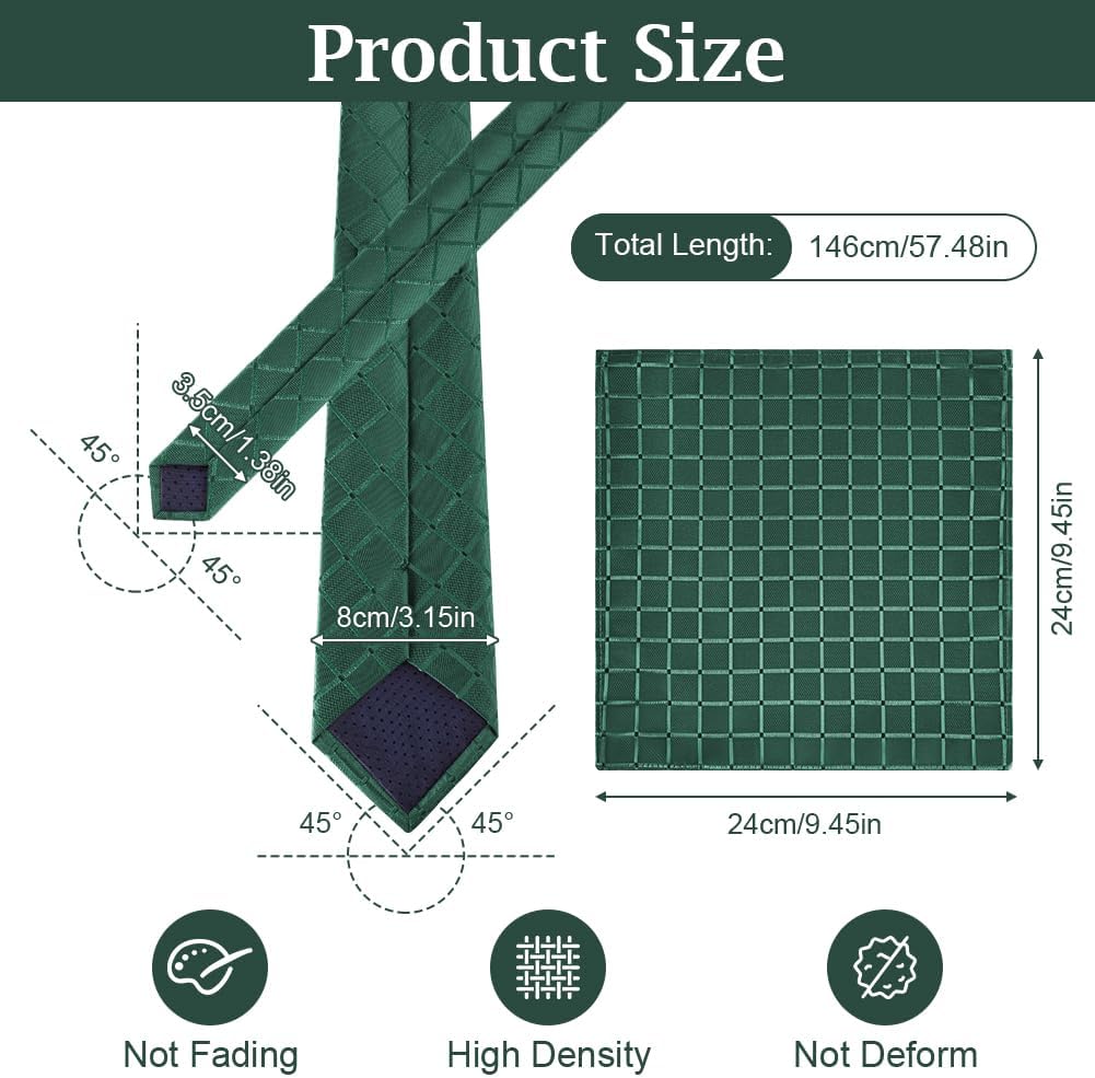 URAQT 3.15″ Solid Color Tie Classic Plaid Jacquard Tie and Pocket Square Set for Men, Formal Satin Necktie for Wedding, Business & Office