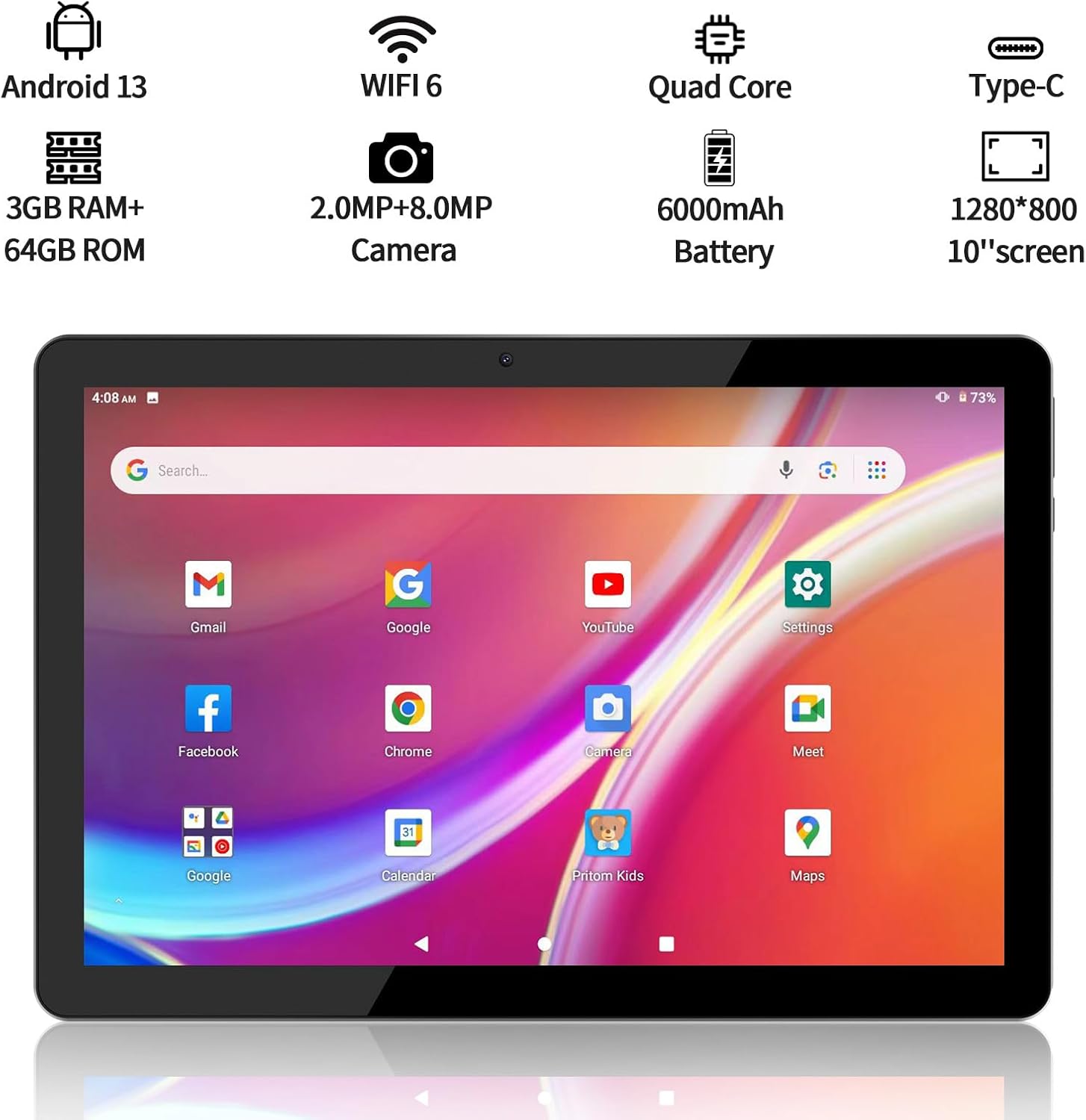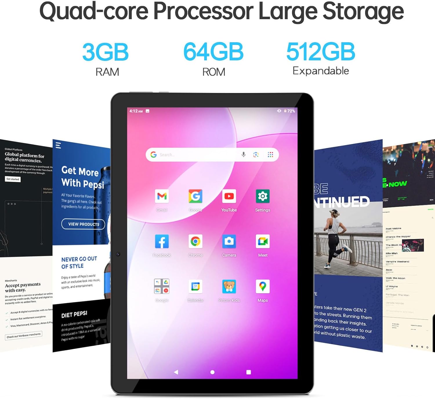 ★Tablet Android 13: The VASOUN TAB10 Pro tablet comes with the latest Android 13 operating system, 7GB(3+4GB expand) RAM + 64GB ROM and the tablet has an Micro SD card slot (expandable by 512GB) for a large storage capacity to store eBooks, songs,pictures, videos and download many games. What’s more, this tablet PC comes with two Box Speaker, which has a clearer voice and bigger Volume.