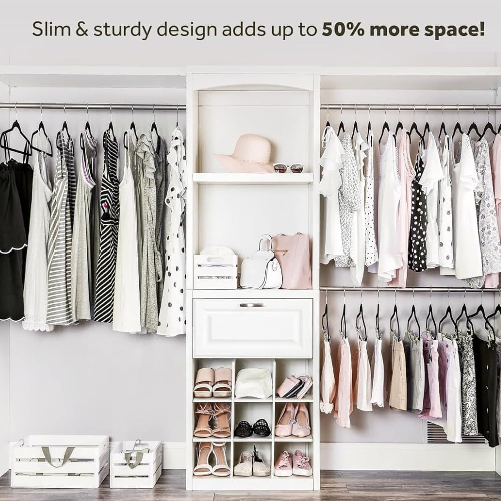 360-DEGREE ROTATING SWIVEL HOOK: The non slip hangers feature an 9 cm chrome hook that rotates 360 degrees, offering maximum convenience when hanging clothes. This swivel design allows you to easily access and reposition garments without needing to remove the hanger from the rod, making it easier to organize your closet and find the items you need