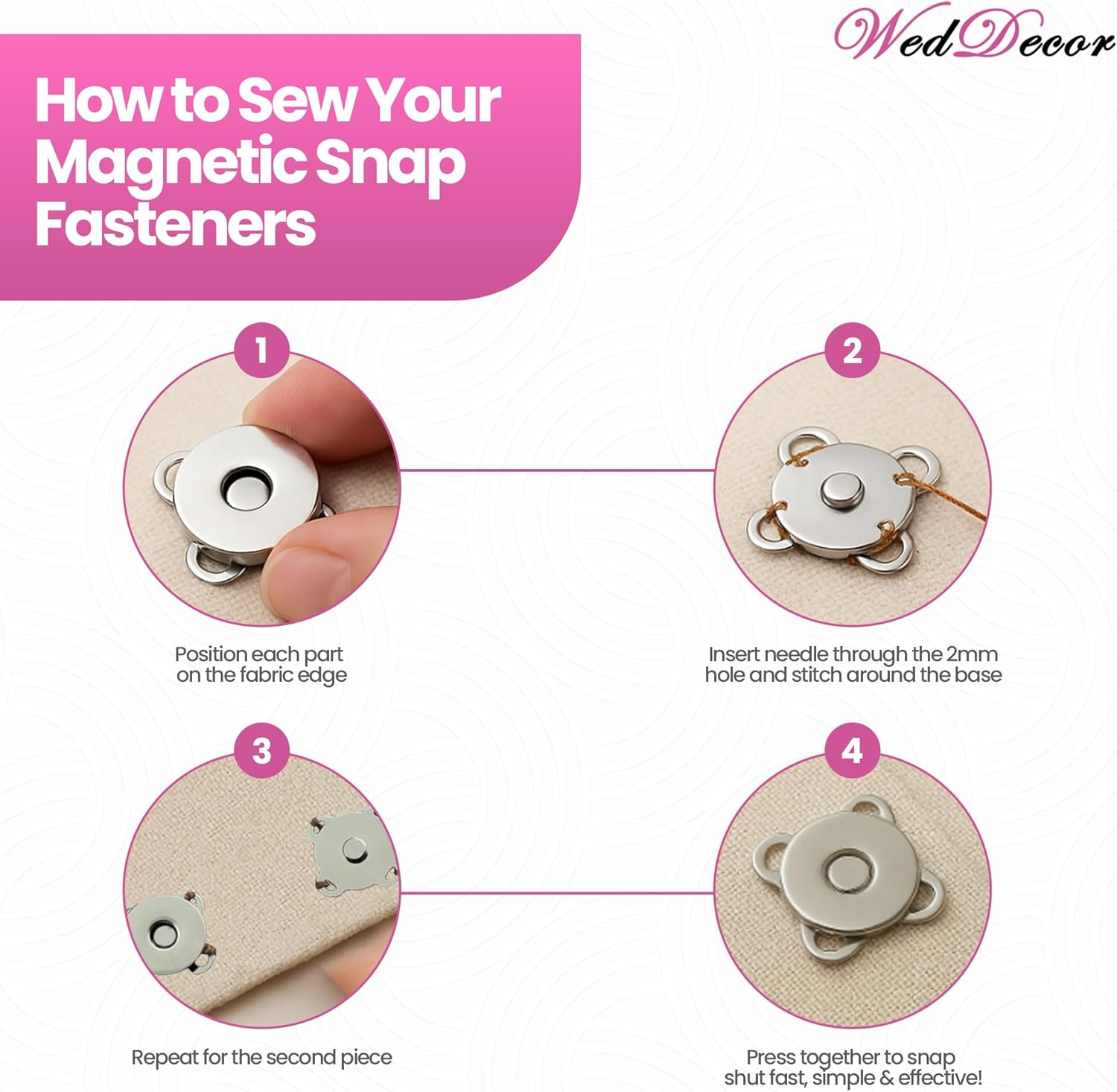EASY TO ATTACH: This magnetic snap closures needs to be hand-sewn by sew on threading with the needle