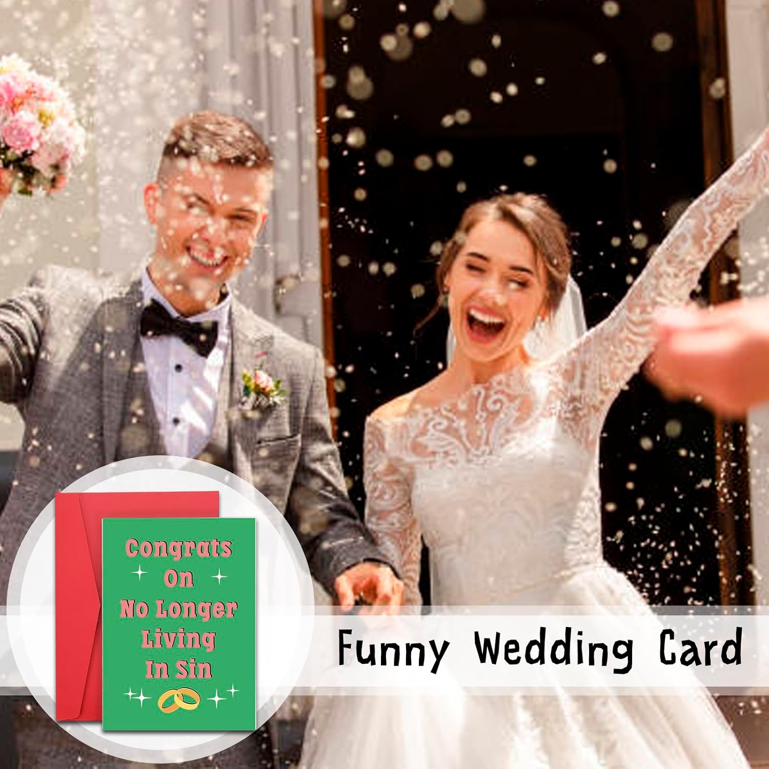Use our funny and irreverent card to make your wedding wishes stand out, designed to leave a lasting impression and lots of laughter! Poke fun at their premarital relationship by jokingly referencing all the sins they have committed.