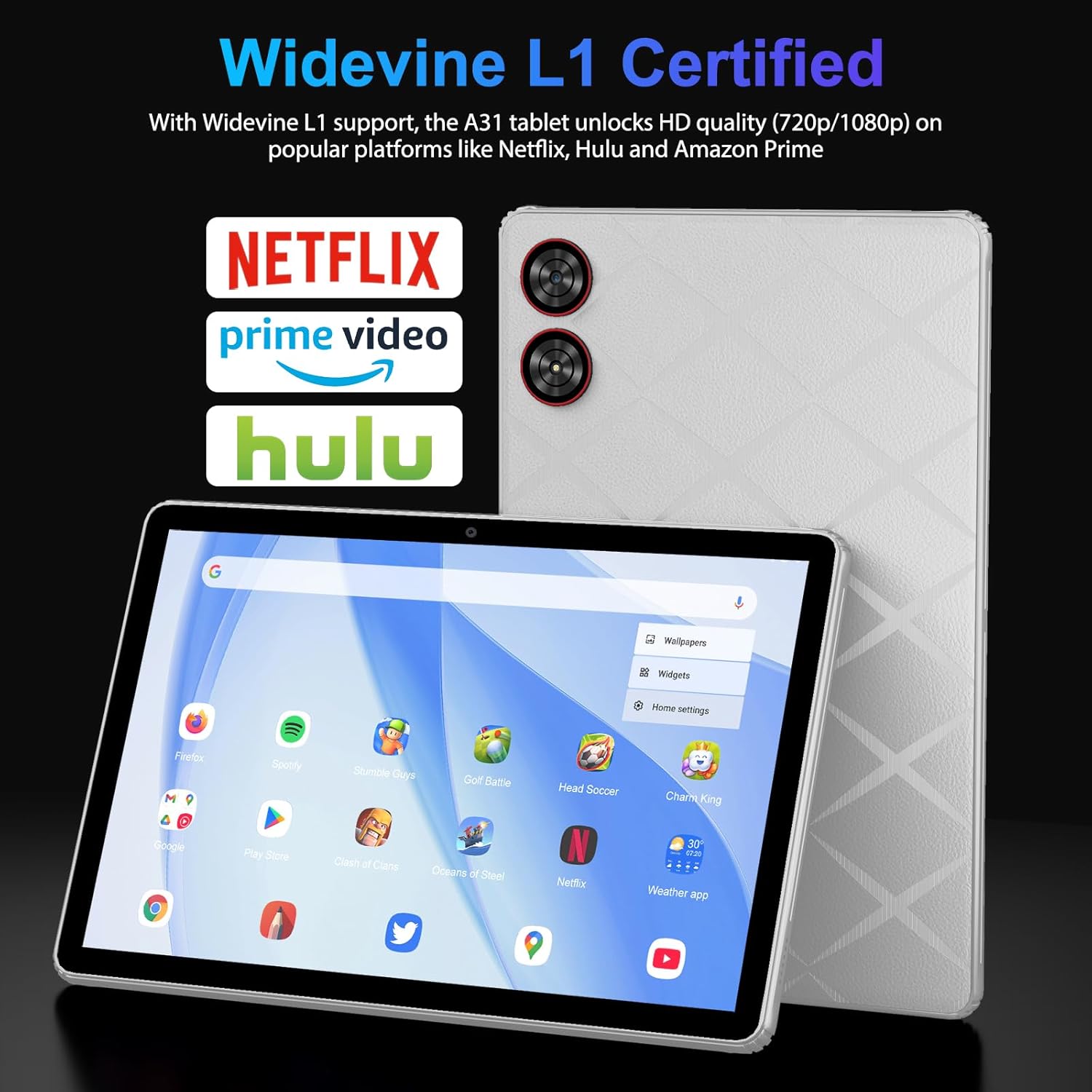 🚀【Widevine L1 HD Streaming & Dual Cameras】Stream HD content on Netflix and Prime Video with Widevine L1 certification. Capture sharp photos with the 13MP rear camera and enjoy clear video calls via the 8MP front camera. Dual speakers enhance audio for movies and music.
